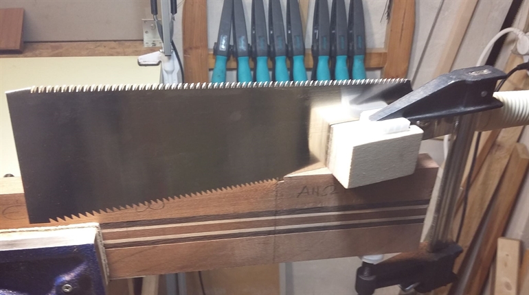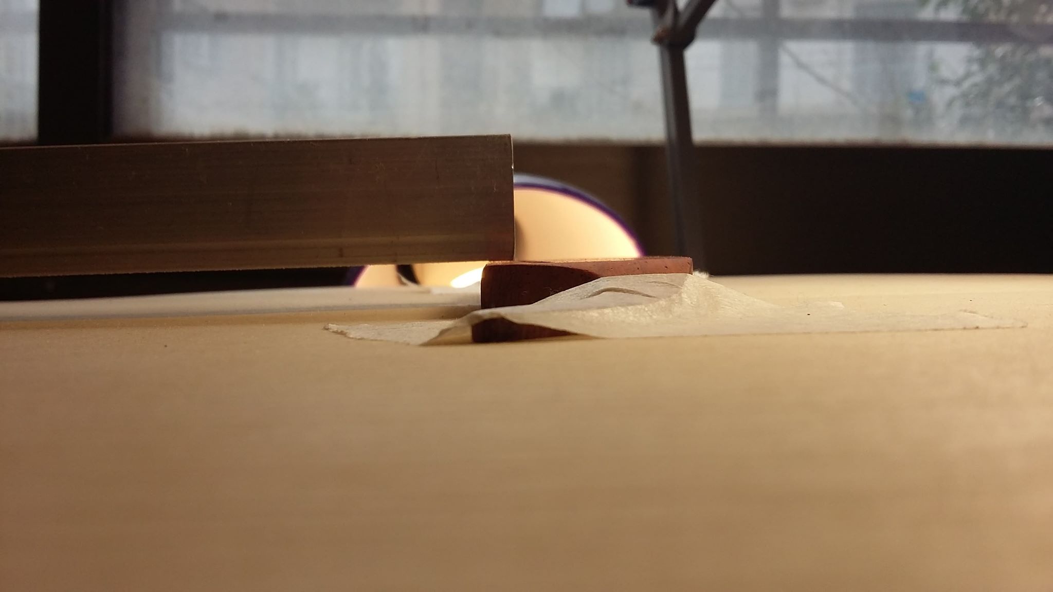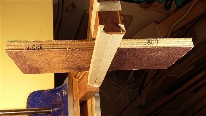 Ετριψα λοιπόν αργά και με προσοχή το «οχτάρι» μου από την πλευρά της πλάτης σε γυαλόχαρτο (Νο 120) κολλημένο