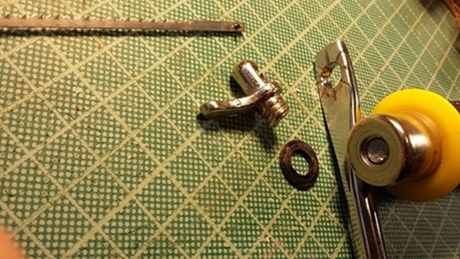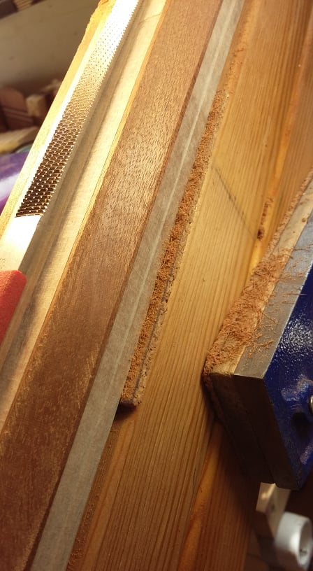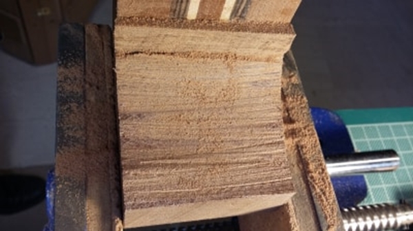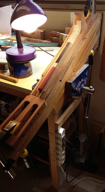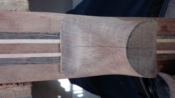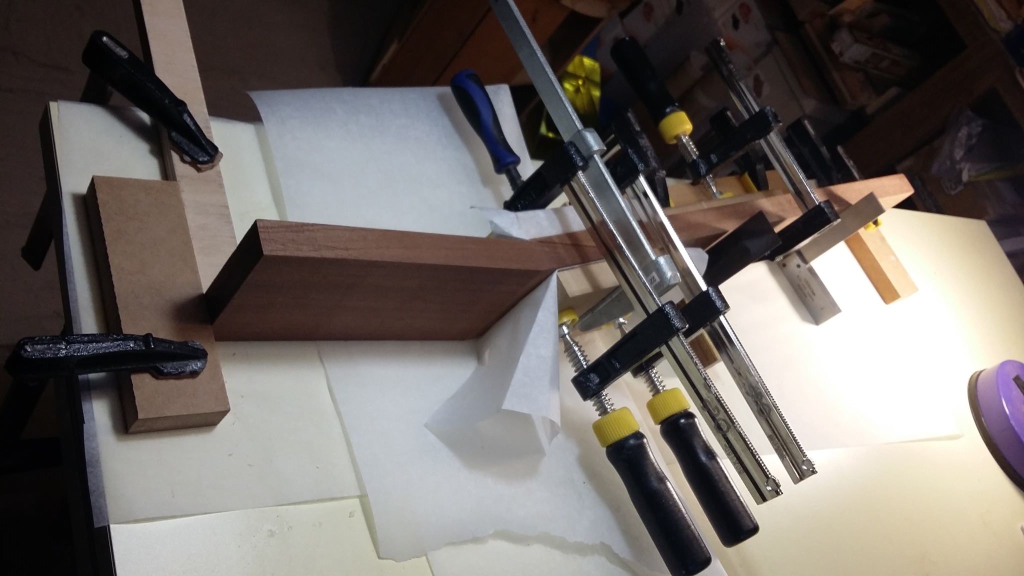 Για να γίνει η πατούρα που θα κολληθεί η πλάτη , μη έχοντας άλλη καρυδιά , χρησιμοποιήθηκαν (κάπως αυθαίρετα)