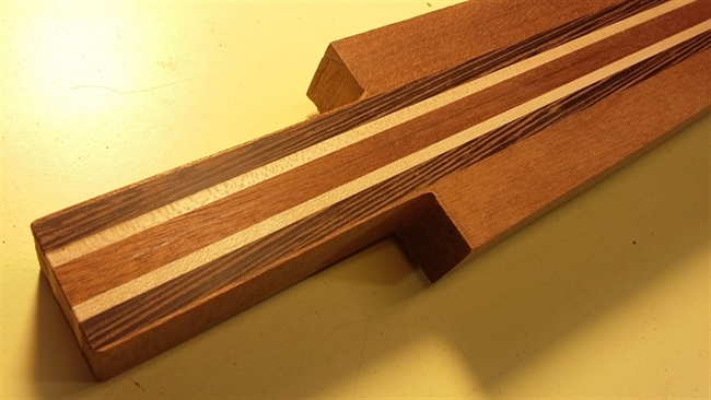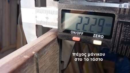 θα αποτελείται από δυο λυγισμένες και κολλημένες λωρίδες καρυδιάς. Η διατομή αυτής της πατούρας θα είναι 5 Χ 15 χιλιοστά.