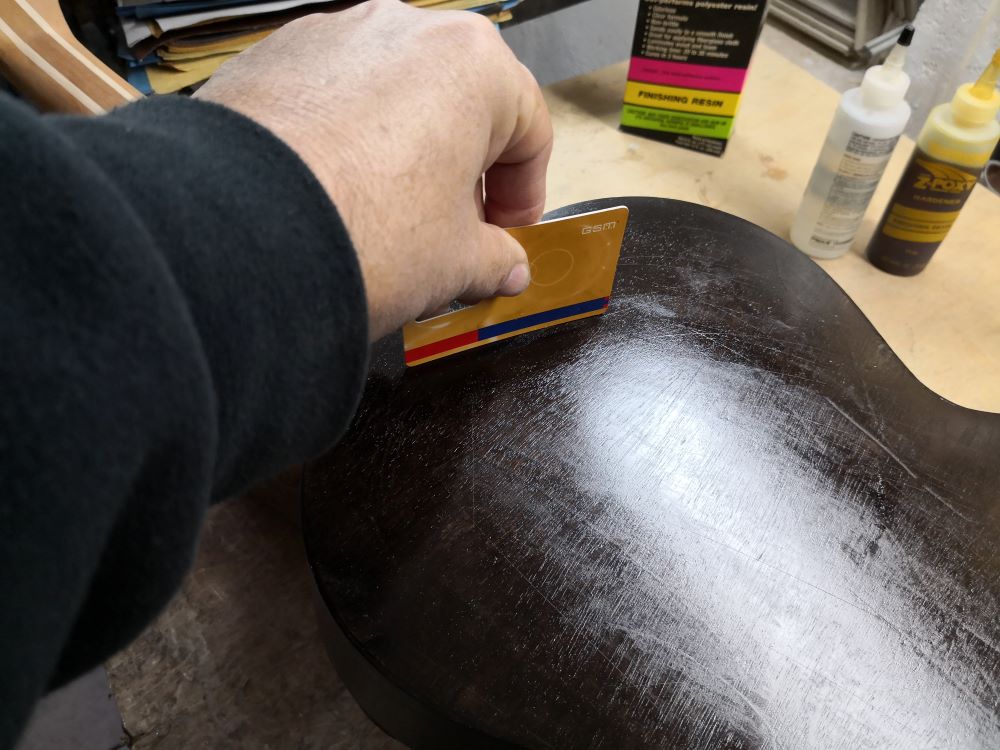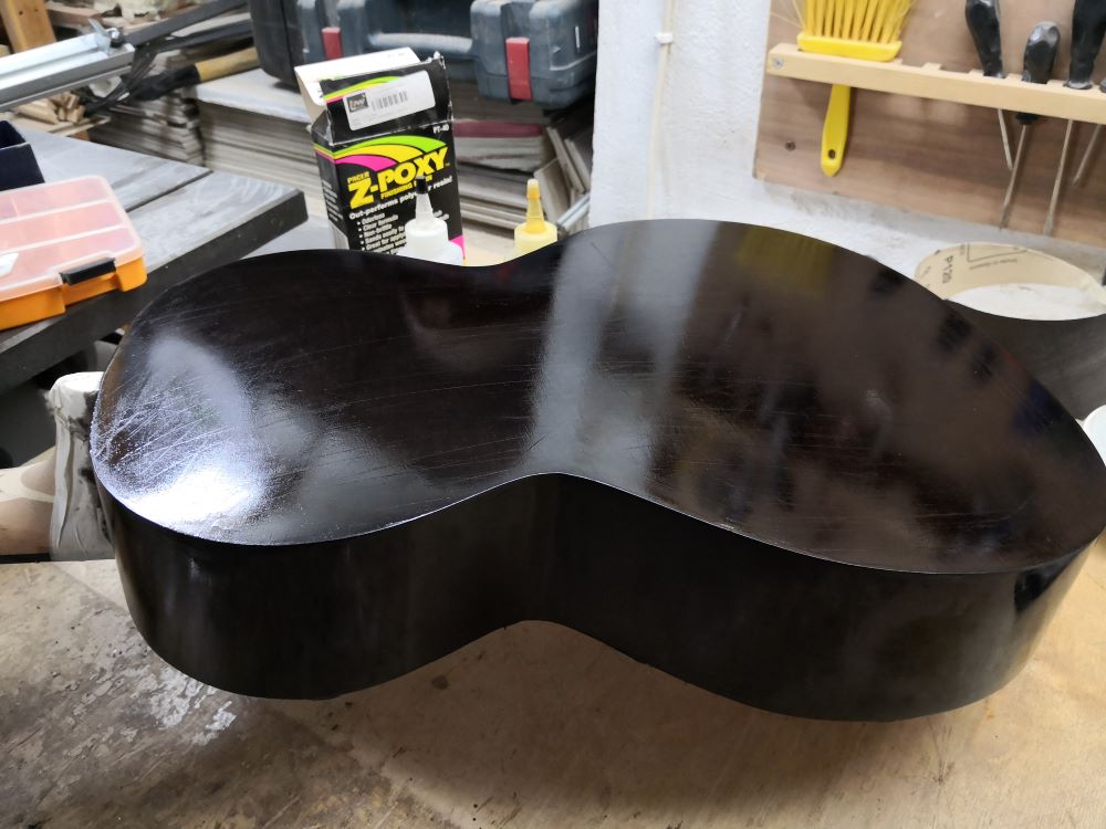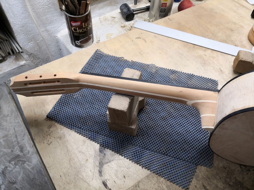 Με μικρό ροκάνι, ξύστρες και τρίψιμο έφυγαν τα εξέχοντα φιλέτα, καθάρισαν οι ξεχυλισμένες κόλλες και τελικά άρχισε να δείχνει ότι μάλλον θα γίνει κιθάρα. ;D