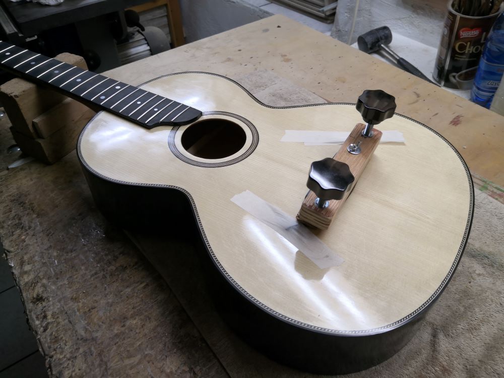 Ναι Ιωσήφ τη στήριξη την κάνω με τέσσερις σφικτήρες. Οι δύο σφίγγουν την κιθάρα και οι άλλοι δύο κρατάνε τους πρώτους πάνω στον πάγκο.