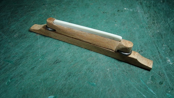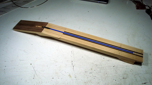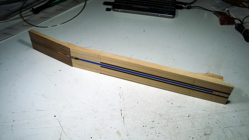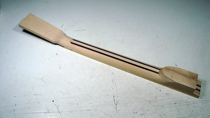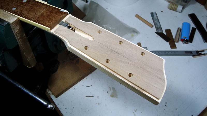 Επίσης αποφάσισα να κάνω ένωση με βίδες από πίσω - σαν τα neck pocket των ηλεκτρικών - αλλά με ρυθμιζόμενη γωνία με σύστημα δικής μου εμπνεύσεως (αν υπάρχει, δεν το 'χω δει πουθενά ).