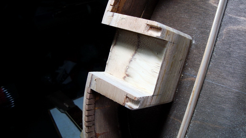 στον τάκο φαίνονται και οι υποδοχές των καμαριών (διαμήκη). Αυτός είναι ο λόγος που το σχέδιο των καμαριών έγινε "Η" και όχι "Α", ήθελα τα καμάρια να πατάνε και στον τάκο του μανικιού. Όμως πρέπει επίσης να περνάνε κάτω από τα ποδαράκια του καβαλάρη οπότε δεν γίνεται να "ανοίξει" και πολύ η γωνία προς τον πίσω τάκο.