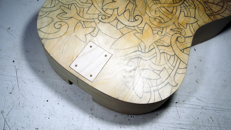 Το βύσμα για το καλώδιο ήταν κοινό με το πιν που βάζεις για να κρεμάσεις την ζώνη της κιθάρας οπότε έγινε μόνο μία τρύπα στα πλαϊνά στο σημείο του πίσω τάκου και καμμία άλλη