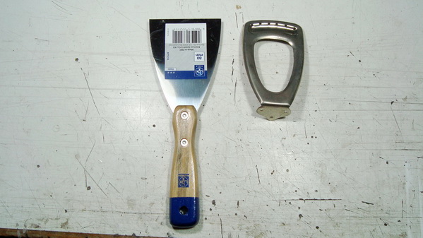 η (εποξική) κόλλα δεν μπόρεσε τελικά να κρατήσει το μέταλλο - αν και υποτίθεται ότι ήταν κατάλληλη, ίσως όμως να φταίει η γαλβανισμένη επιφάνεια - βγήκε όλη επάνω στο ξύλο, σαν γυαλί, χωρίς να μείνει ούτε ιδέα υπολείμματος στη λαμαρίνα