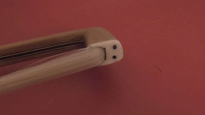 Ἐκεῖ πού ἀρχίζει ἡ τρίχα ( 2η φωτογραφία τοῦ προηγουμένου μηνύματος ) , κάτω ἀπ' τό κοκκαλένιο καπάκι μέ τίς 2 μαῦρες λεπτές καβίλιες , ὑπάρχει σφηνοειδής τρῦπα ὅπου εἰσάγουμε τήν ἄκρη τῶν τριχῶν δεμένη καί στερεωμένη σ' αὐτήν μέ λεπτή σφήνα . Στό τέλος περνοῦμε ὅοοοοολη τήν τρίχα μέσα ἀπ' τήν ὀπή τοῦ κοκκαλένιου καπακιοῦ τό ὁποῖο κολλᾶμε μέ ψαρόκολλα . Σέ περίπτωση ἀλλαγῆς τρίχας , ἁπλῶς ξεκολλᾶμε το κοκκαλένιο καπάκι .