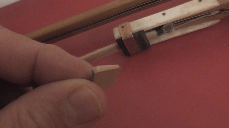 Τώρα , θά σοῦ δείξω , ὅπως σοῦ ὑποσχέθηκα τόν " μηχανισμό " τεντώματος τῆς τρίχας τοῦ δικοῦ μου δοξαριοῦ , καί σύ κάνε ὅπως θέλεις . Πάντως , ὀ τρόπος πού συγκρατοῦνται οἱ τρίχες στό δικό σου δοξάρι , εἶναι ἁπλούστατος , καί μπορεῖς νά πάρης μιά ίδέα ἀπ' τόν ἀντίστοιχο τρόπο τοῦ δικοῦ μου .
