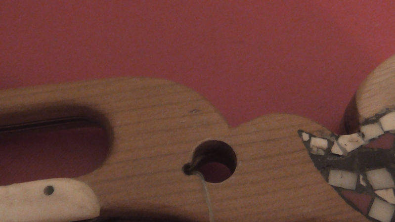 Εϊχα κόψει σε κορδέλα το σκάφος και μου είχε φύγει στο σημέδεμα οπότε δεν γινόταν πιο φαρδύ. Υπήρχε η επιλογή να πάνε πιο κοντά οι χορδές αλλά θα δυσκολεύονταν τα δαχτυλα να χωρέσουν ανάμεσα. Γιαυτο κατέληξα συμβιβαστικα σε λίγο πιο κοντά τις χορδές και μάλιστα τις μετατόπισα προς τα δεξιά οπως κρατας το όργανο για να κερδίσω χώρο στο καντίνι.