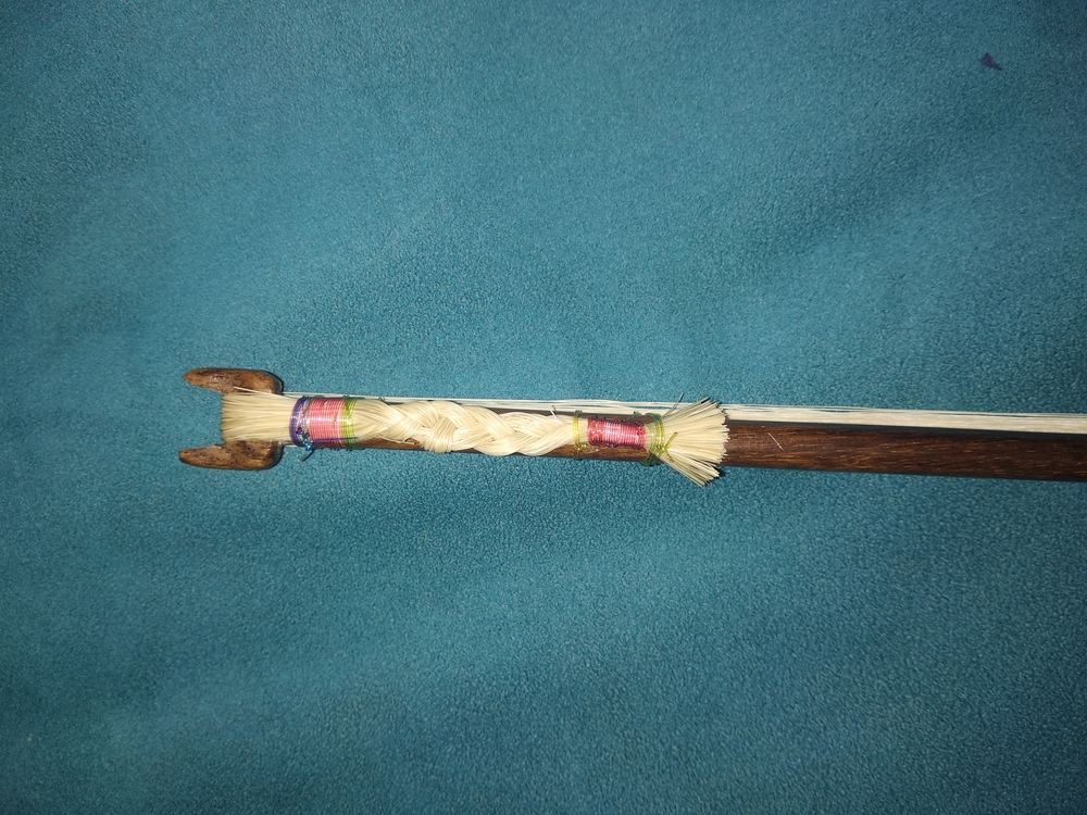 Τωρα για το δοξαρι χρησιμοποιησα μια καβιλια για να τυλιξω τις τριχες κ ολο μαζι αυτό το κολλησα μεσα σ'ενα δερμα που κολληθηκε με τη σειρά του στο ξυλο του δοξαριου. Αυτός ειναι ο τροπος που φτιαχνουν τα δοξαρια στη Κωνσταντινούπολη και ειναι διαφορετικος απο τα δοξαρια αλλων λυρων. Εκτος αν θελει καποιος να βαλει αντι καβιλια ενα ξυλα σε αλλο σχημα.