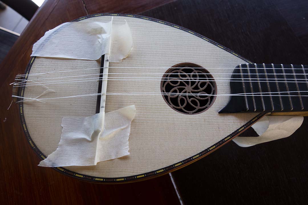 Το μπαγλαμαδάκι έχει ύψος γύρο στα 8 cm για να γεφυρώσω το σκίσιμο με χορδιέρα θα πρέπει τουλάχιστον το μήκος της να είναι 6 cm. Ένα πρόχειρο τεστ που έκανα χαλάει αρκετά την αισθητική του οργάνου, όποτε θα επικεντρωθώ στην εσωτερική ενίσχυση.