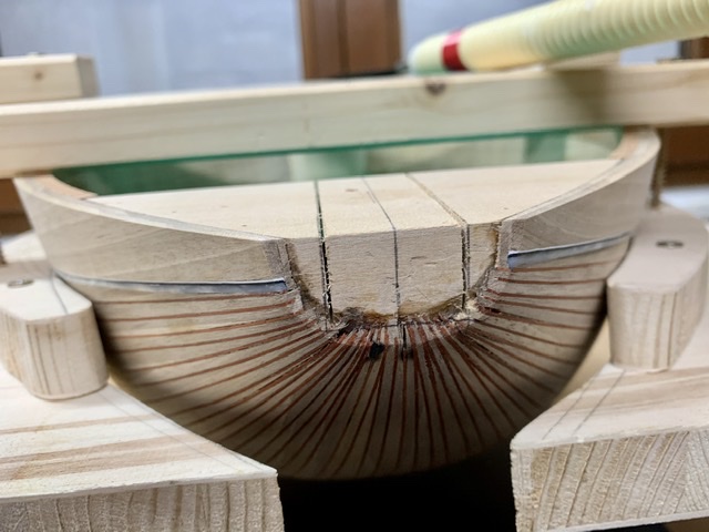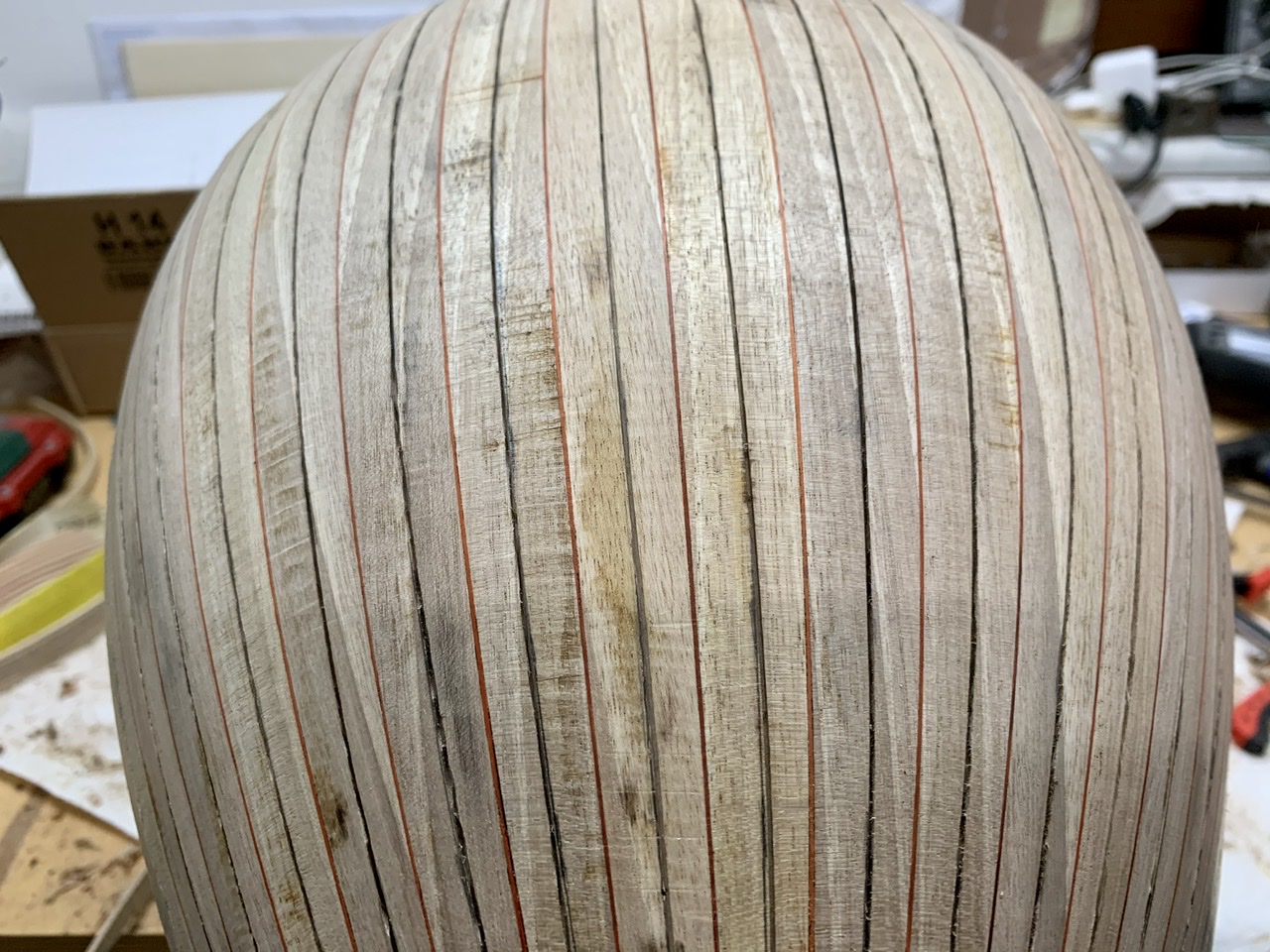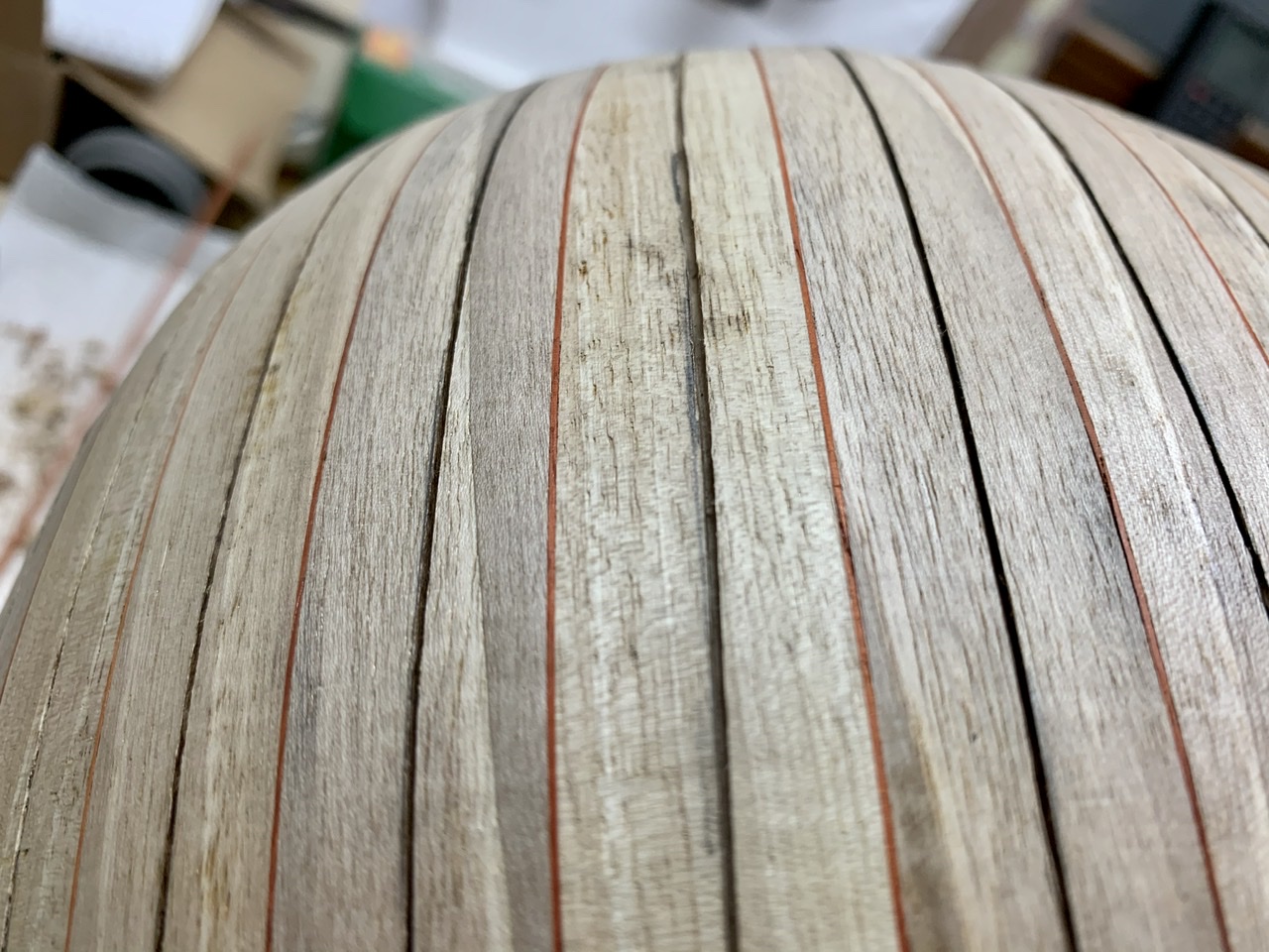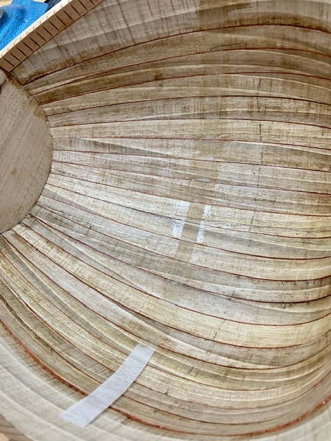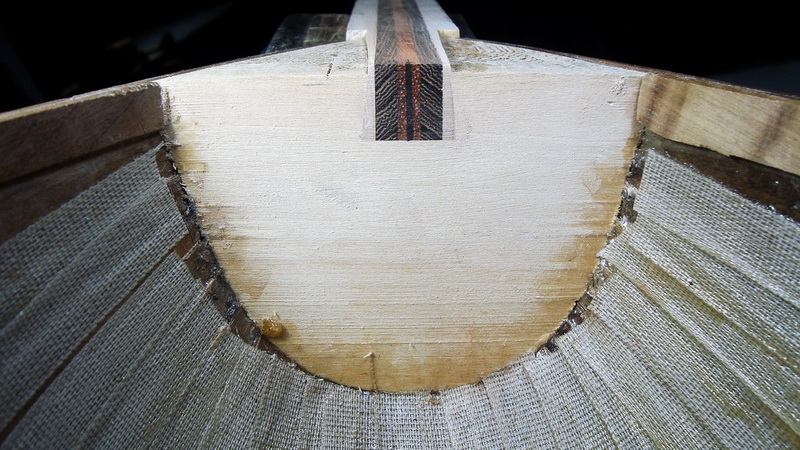 Αὐτό τόν τρόπο κολλήματος τῶν δουγῶν , τόν εἶδα πρίν 35 - 40 χρόνια στό ἐργαστήριο πού μάθαινα , στήν Ἀθήνα . Εἶναι ἕνας παραδοσιακός τρόπος , ἀφοῦ καί οἱ παλαιότεροι ὀργανοποιοί , αὐτόν ἐφάρμοζαν . Αὐτός ὁ τρόπος κυρίως ἐφαρμόζεται στήν μαζική παραγωγή σκαφῶν , ἀφοῦ , μέ τό κάψιμο ξεραίνεται ἀκαριαῖα ἡ κόλλα καί προχωρεῖς στήν ἑπομένη δούγα ἀμέσως ( ἀφοῦ κολλήσεις τήν δούγα τῆς ἄλλης πλευρᾶς ) . Ὅμως , μέ τό κάψιμο ἡ θερμοκρασία τῆς ψαρόκολλας ἀνεβαίνει σέ σημεῖο βρασμοῦ , ἀφοῦ τήν βλέπεις , ὅταν ἀκουμπᾶς ἐπάνω της τό καυτό σίδερο βγάζει φοῦσκες , ὅπως ὅταν βράζει τό νερό .