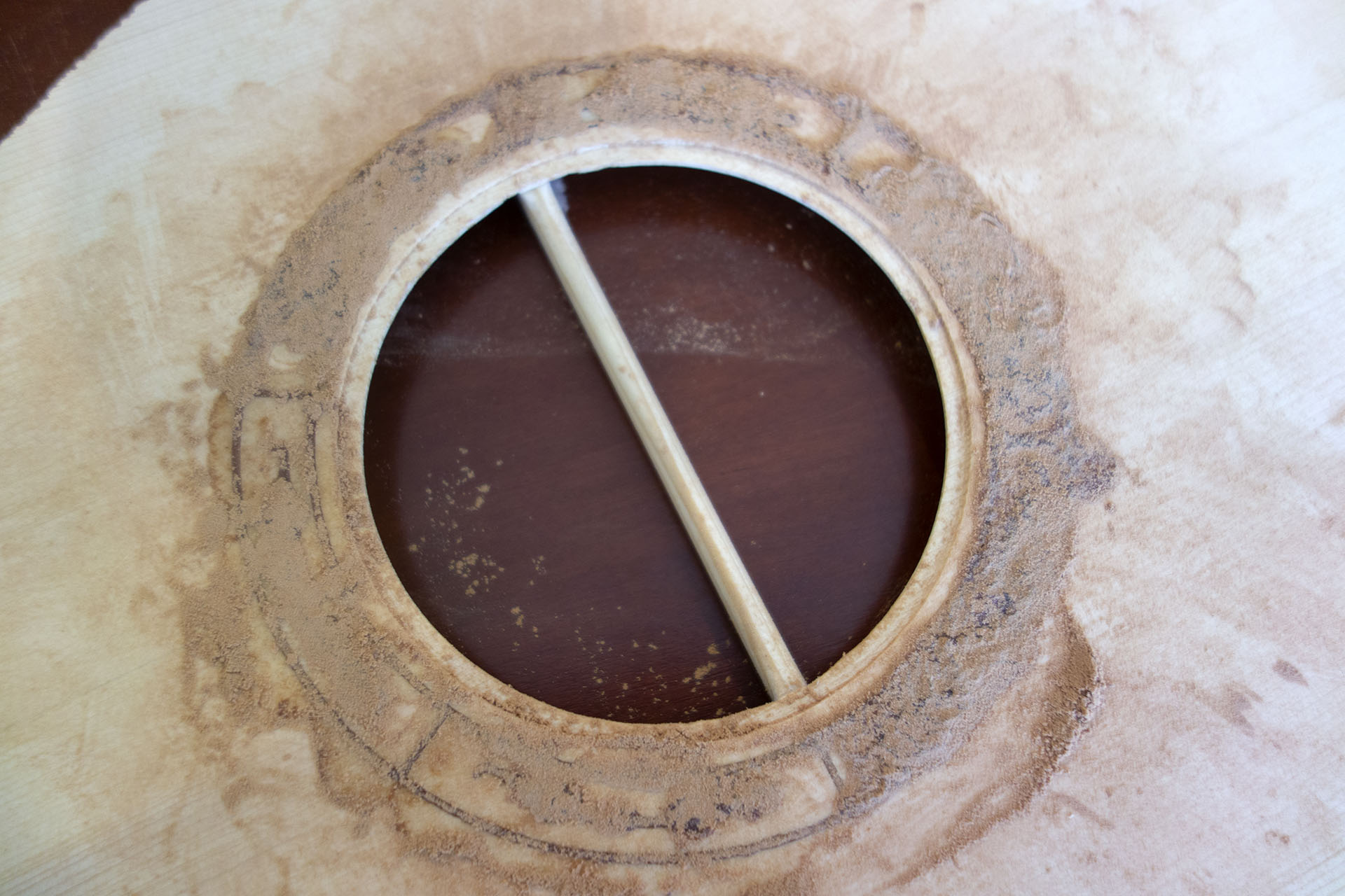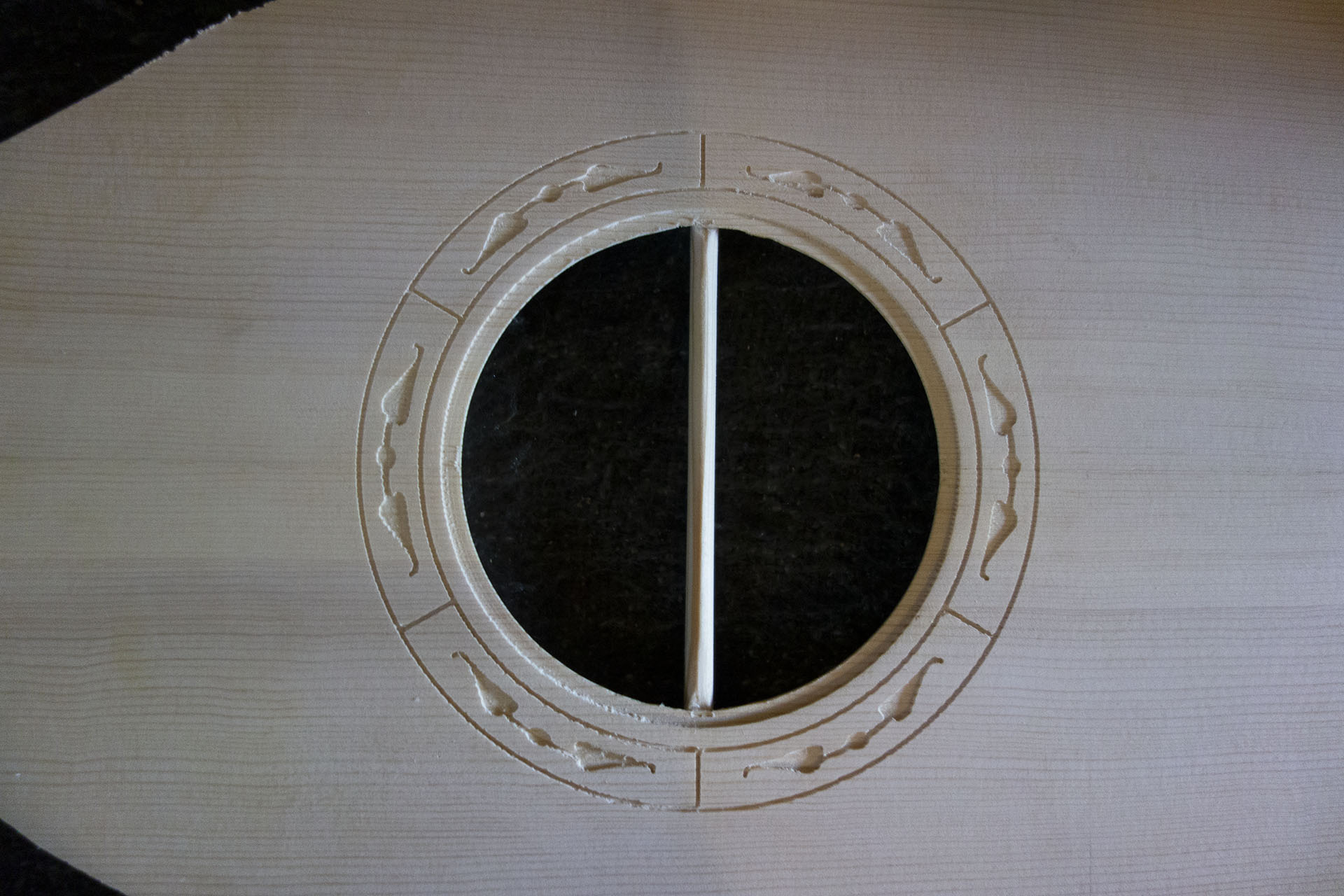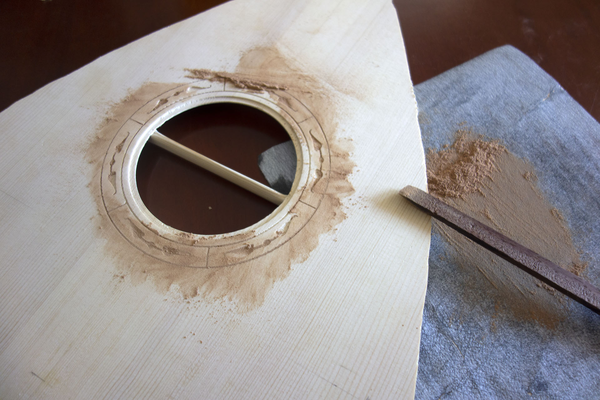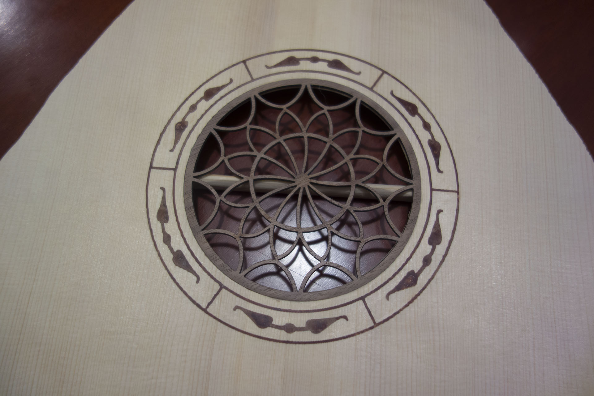 Μετά απο πολλά πειράματα σε φοτοσοπο και μετέπειτα σε πρόχειρα ξύλα καταλήξαμε στο παρακάτω σχέδιο γύρο απο την ροζέτα το όποιο έγινε με το κλασικό ντρέμελ με ρυθμό χελώνας μην τυχόν και κάνω κάτι λάθος.