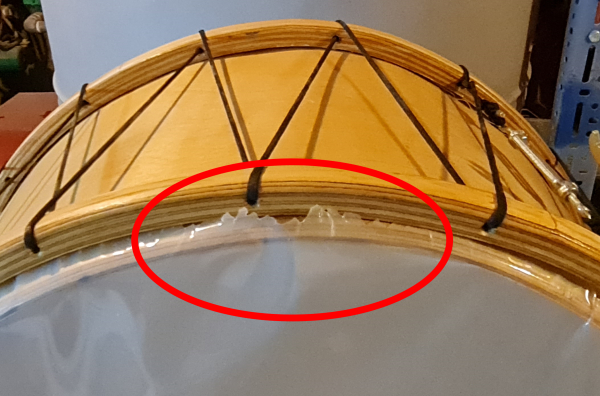 Πάνω στο τέντωμα, για να πάρω και τις τελευταίες ζάρες που είχε η μεμβράνη, εστίασα πολύ την τάνιση σε ένα σημείο και έγινε το κακό...