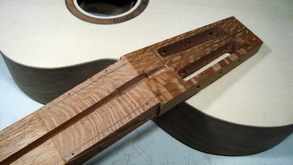 Η ένωση μάνικου-σκάφους προβλέπεται στο 12ο τάστο -με ό,τι αυτό συνεπάγεται για τον ήχο διότι η θέση του καβαλάρη μετατοπίζεται προς το κέντρο του καπακιού. Ανοίγει παρένθεση: Μέχρι πριν εκατό-τόσα χρόνια η ένωση στις κιθάρες γινότανε σχεδόν αποκλειστικά στο 12ο τάστο. Αργότερα βγήκαν ανάγκες στην αγορά μάλλον για παίξιμο πιο virtuoso και η ένωση μετακινήθηκε στο 14ο τάστο παρασέρνοντας βέβαια και τον καβαλάρη εγγύτερα στην τρύπα και μακρύτερα από το «κέντρο» του καπακιού. Οι κιθάρες με ένωση στο 12ο λένε ότι είναι και πιο ευκολόπαιχτες. Ίδωμεν…Κλείνει η παρένθεση.