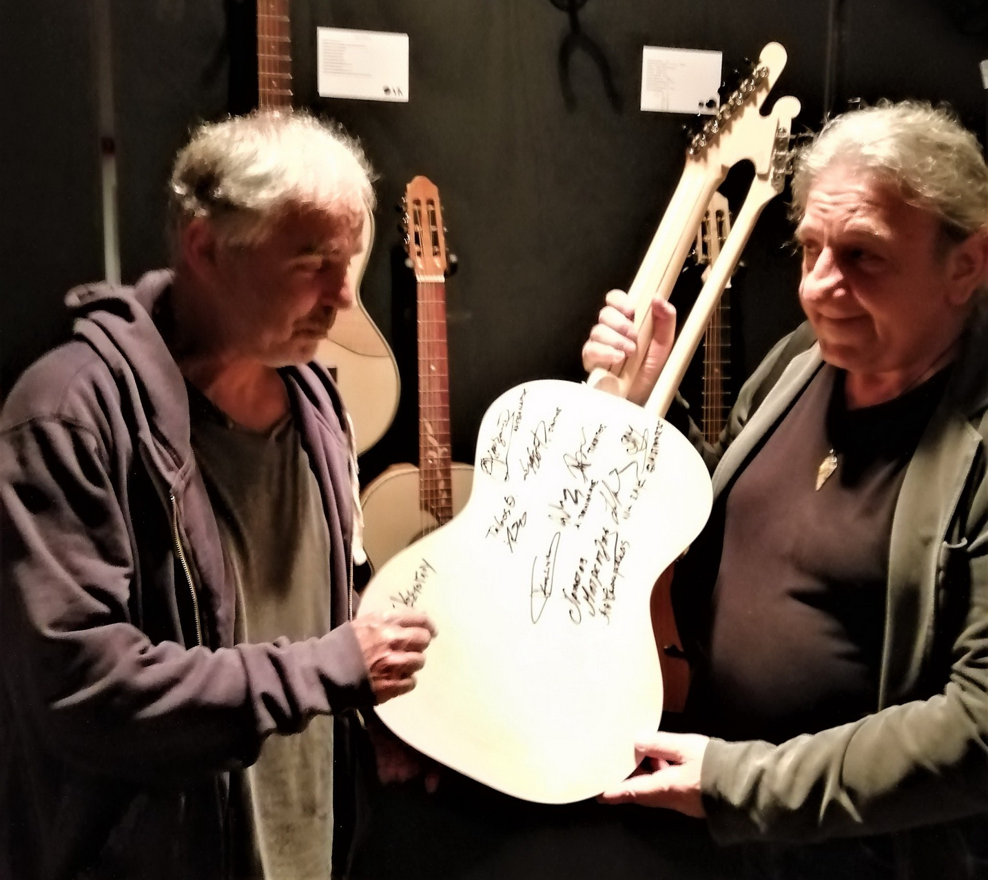 Παρακαλώ πολύ, όσοι ιδιώτες συλλέκτες ή μουσικοί επιθυμούν να εκθέσουν στο κοινό τις παλιές λαϊκές κιθάρες τους, ας επικοινωνήσουν μαζί μου στο messenger, στο email info@theodorakis.name ή στο τηλέφωνο 2310 231647"