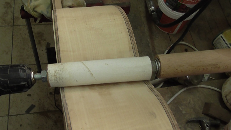 Κώστα , τό ἔκανα αὐτό πού λές , ἀλλ' ἀμέσως στραβώνει μέ μιά μόνο κόλληση , καί δέν μπαίνει στό τριβεῖο τυμπάνου καμπύλο . Θέλει συγχρόνως δύο κολλήσεις . Κι αὐτό σέ ὁμοειδῆ ξῦλα , μέ τήν ἔννοια νά εἶναι ἰσόβενα , ἤ ίσόβενα καί νοβοπάν στή μέση , ὄχι τό ἕνα σόκορο καί τ' ἄλλα λεπτά ( καπλαμάδες ) . Τό ἔκανα κι αὐτό , μέ 2 καί 3 κολλήσεις μέ καπλαμάδες καί μία στρώση ἐλιές , ἀλλά πάλι στράβωνε . Ἔτσι κατέληξα στό συμπέρασμα ὅτι , τό ξῦλο τῆς ἐλιᾶς εἶναι δυνατώτερο ἀπό τόν καπλαμᾶ ἤ τούς καπλαμάδες λόγω πάχους ἤ μπορεῖ καί λόγω σοκόρου , καί " ζμπρώχνει " τόν καπλαμᾶ δημιουργῶντας του καμπούρα , ἐνῶ στόν ἑαυτό της δημιουργεῖ κοιλότητα , τό ἀντίθετο δηλαδή ἀπ' αὐτό πού θέλουμε . Τό εἶχα σκεφτεῖ κι ἐγώ αὐτό μέ τά καμάρια , δηλαδή νά δώσω τήν καμπυλότητα μ' αὐτά , ἀλλά , καί στίς 2 δοκιμές ἦταν τόσο ἀντίθετα καμπῦλες οἱ πλάτες πού , ἀκόμη κι ἄν αὐτές λύγιζαν ἀντίθετα χωρίς νά σπάσουν , εἶχαν τόση δύναμη πρός τά ἐκεῖ πού ἤθελαν , πού οὔτε τά καμάρια θά μποροῦσαν νά τίς σταθεροποιήσουν , ἐκτός κι ἄν ἦταν σιδερένια .