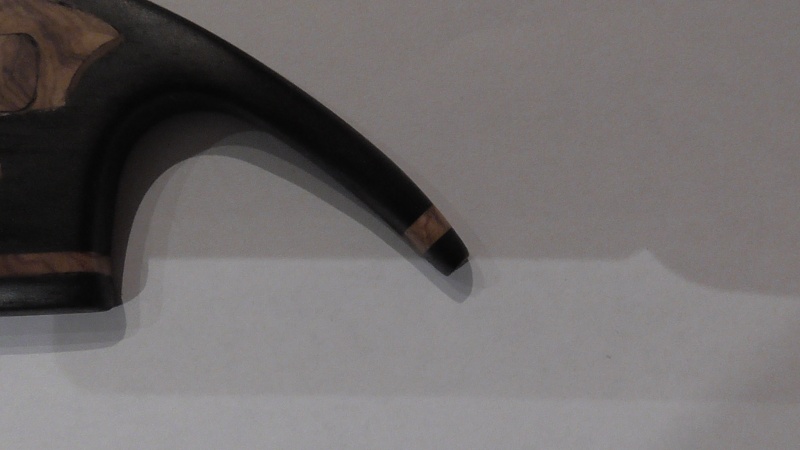 Στά τελειώματά του , ἀπ' τίς δύο μεριές , κόλλησα μέ κυανοακρυλική ἀπό 1 κομματάκι ἐλιᾶς καί 1 κομματάκι ἔβενο . Σέ 2-3 ὡρίτσες ἔτριψα προσεκτικά .