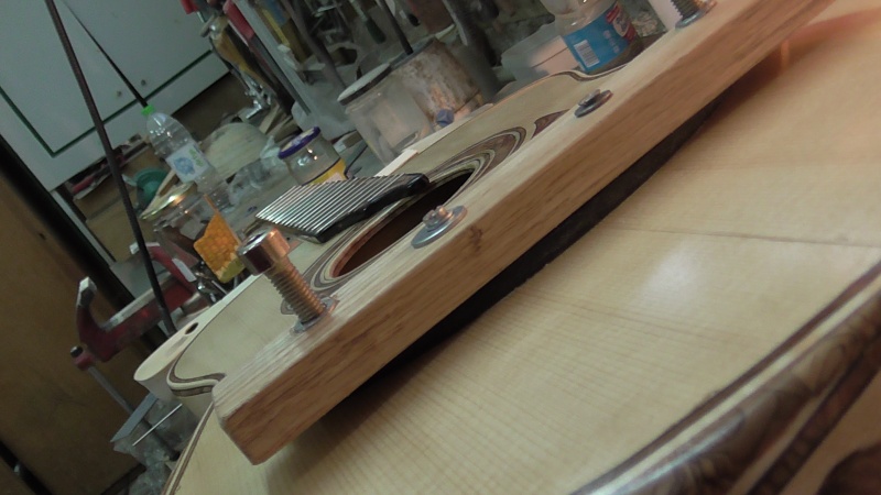 Ἐδῶ θέλω νά πῶ πώς , ὅτι κομμάτι - μέρος τοῦ ὀργάνου κατασκευάζω , τό ὁποῖο θά προσαρμοσθῆ ἀργότερα στήν ὅλη κατασκευή , προσπαθῶ νά τό τό κατασκευάζω τέλεια ὥστε νά μήν χρειάζεται ἄλλη ἐπέμβαση μετά τό κόλλημα , π.χ. τρίψιμο , γιατί μπορεῖ νά ἐμποδίζουν τά διπλανά μέρη τοῦ ὀργάνου . Εἰδικά στό τακούνι , πολύ παιδεύτηκα στίς προηγούμενες κιθάρες , πού ἀφησα τήν ἐπεξεργασία του μετά τό κόλλημα στά πλαϊνά .