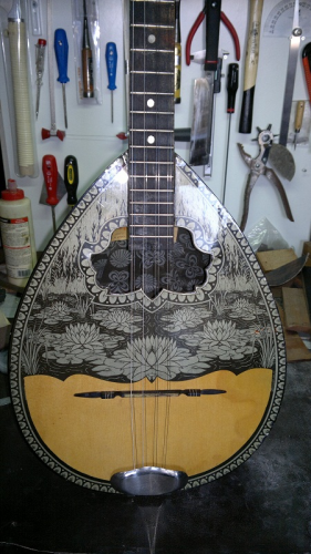 Να εισαι καλα ρε ΚΟΥΡΕ μου δινεις την ευκαιρια να πω μια ιστορια με ενα μπουζουκι σαν και αυτο με διαφορετικη φιγουρα απο  χαρτι και ιδια ταμπελα,  ηταν το πρωτο μου και τελευταιο αγορασμενο οργανο σε ηλικια των 17. Απο την στιγμη που καταλαβα οτι δεν ηταν ξυλινο μετα απο 4 χρονια αφου και ειχε παρει μπροστα αρχισε νεκροψια και απο εκει και επειτα ο ψορα της κατασκευης