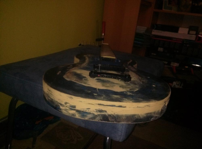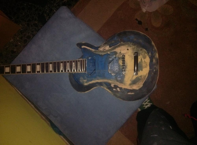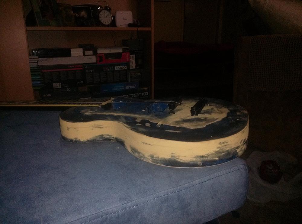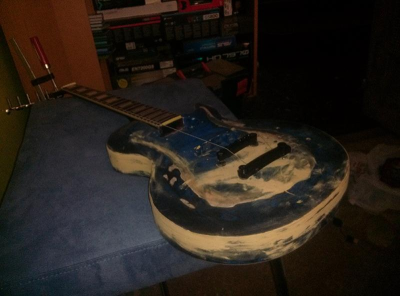 Λοιπόν η κιθάρα βρίσκεται σαυτή τη φάση. Τα απομεινάρια βερνικιού είναι διότι την έβαψα και μετα έκανα ένα τραγικό λάθος στην τοποθέτηση της tune-o-matic (αυτός που την εφηύρε ήταν μάλλον σαδιστής).