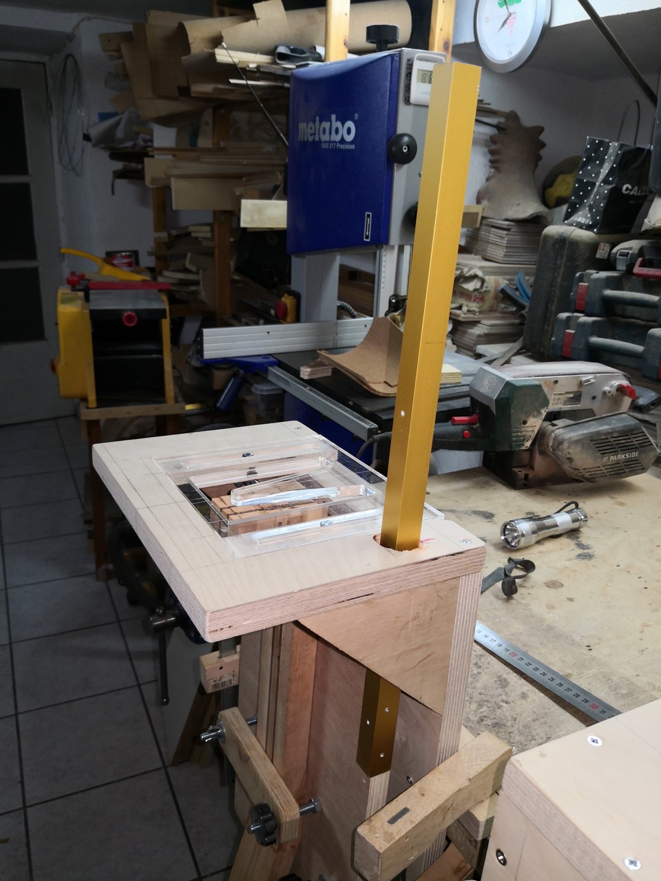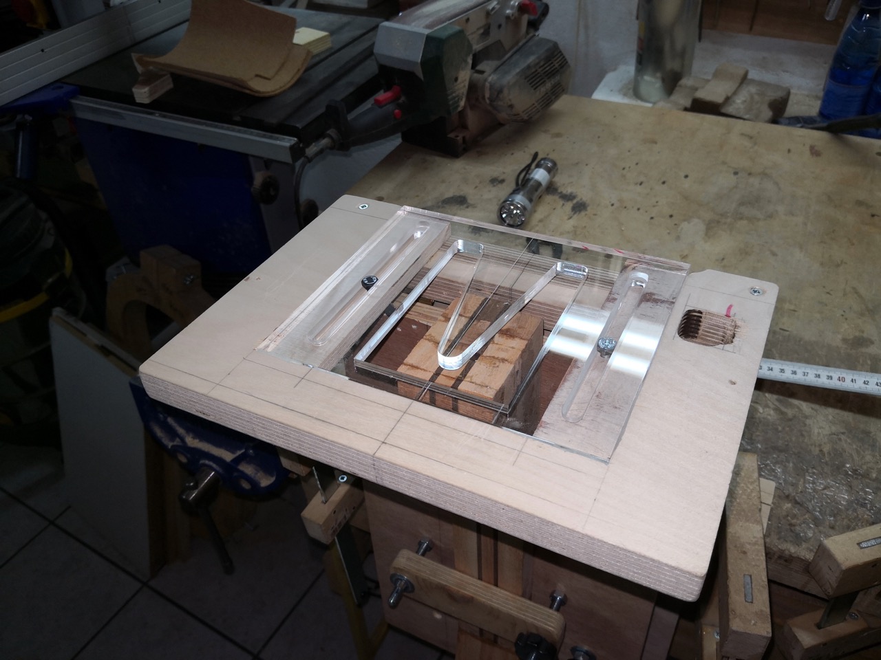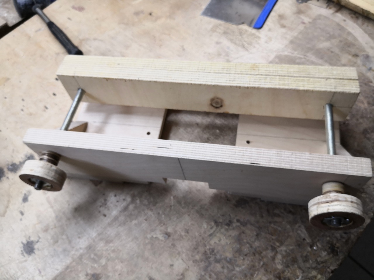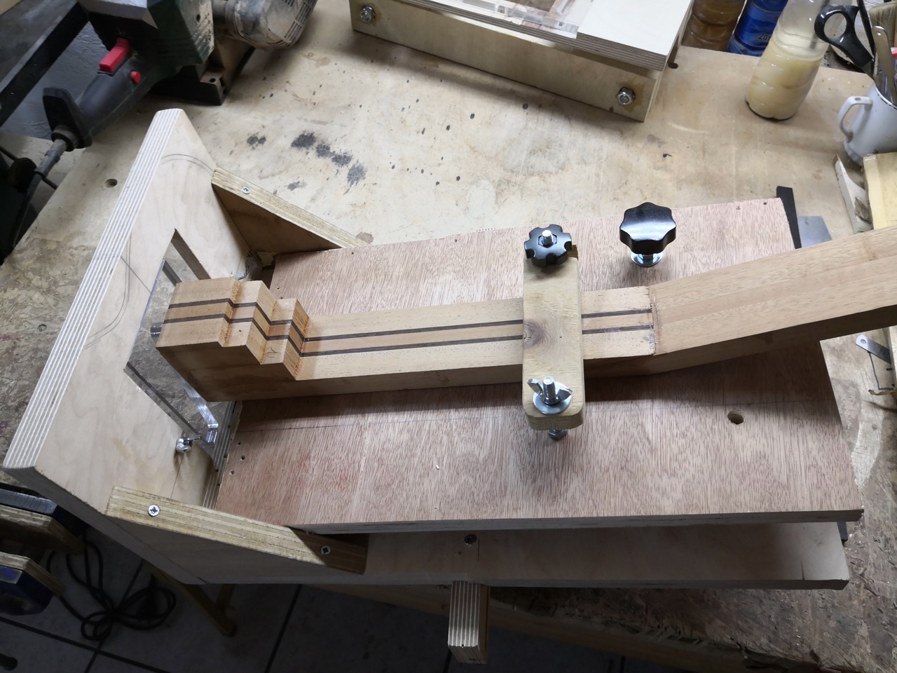 Το μόνο στοιχείο που πρόσθεσα είναι ένα σανίδι στο πίσω μέρος του jig ώστε να μπορεί να πιαστεί με ασφαλή και σταθερό τρόπο πάνω στον πάγκο. Στην παληά μου κατασκευή το έπιανα πάνω στη μέγγενη.