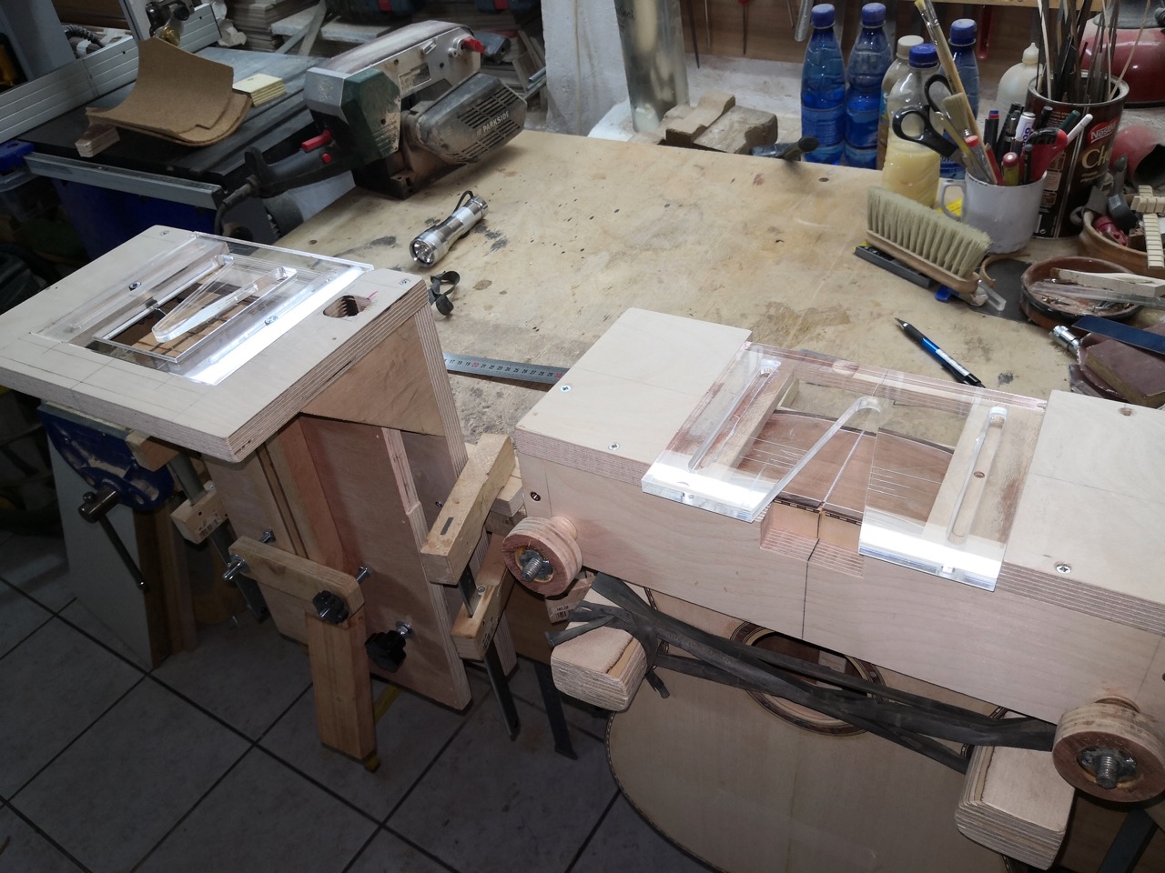 Την τελευταία εβδομάδα ενόψει της ένωσης του μπράτσου με το σκάφος στην λαϊκή κιθάρα που κατασκευάζω αυτή την εποχή, αποφάσισα να κάνω κάποιες βελτιώσεις στην δική μου ιδιοκατασκευή που την είχα φτιάξει πριν αρκετά χρόνια. Η τότε απειρία και η έλλειψη αρκετών γνώσεων, με είχε οδηγήσει να κάνω σημαντικά κάποια λάθη στην κατασκευή της, που στην πράξη είχε ως αποτέλεσμα να έχω κάποιες αστοχίες στις κατασκευές μου, ευτυχώς όχι ανεπανόρθωτες. Για το λόγο αυτό πάντοτε το στάδιο της δημιουργίας της χελιδονοουράς ήταν για μένα αγχωτικό.