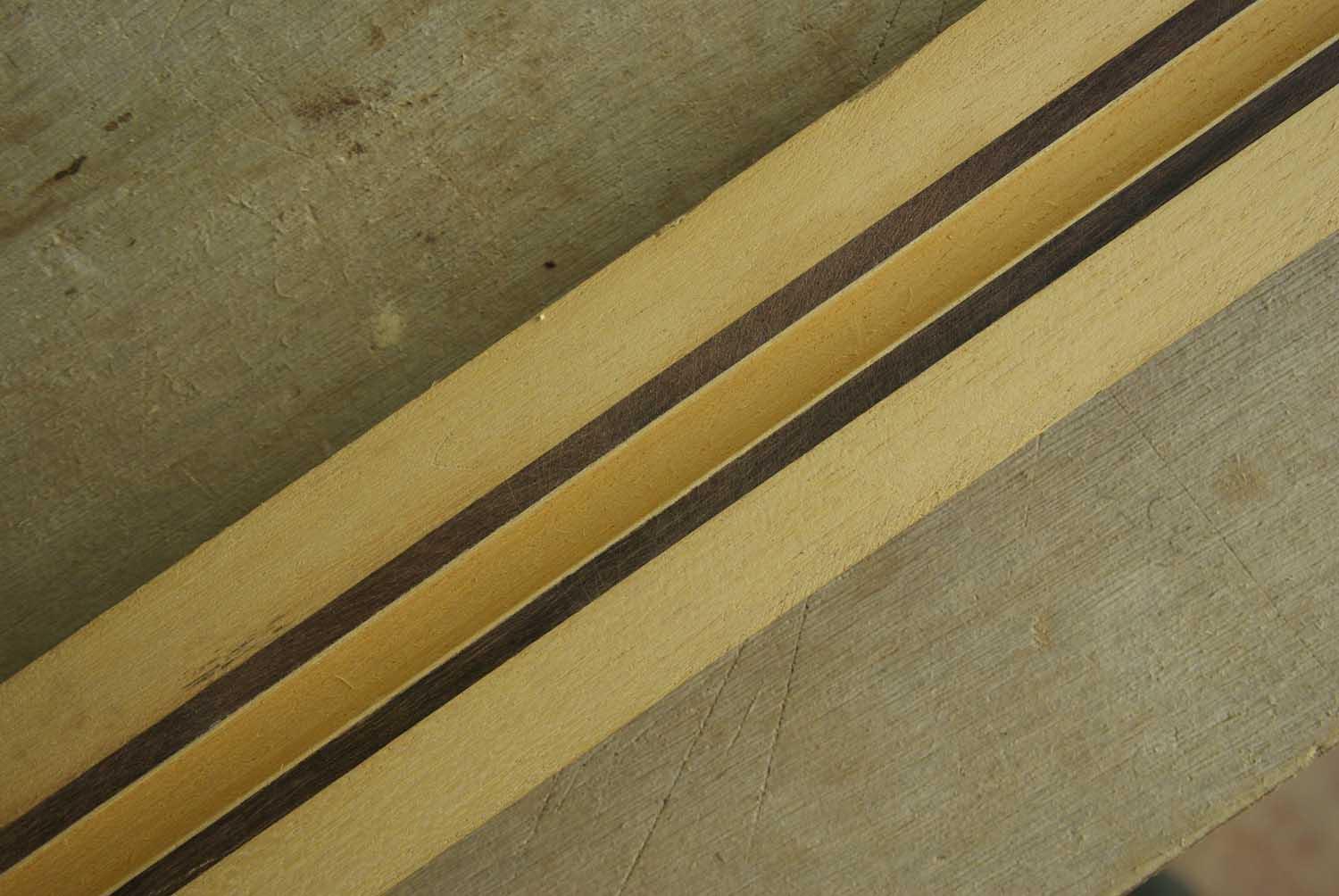 Μέ οδηγό τήν πήχη τραβάμε μέ τό ρούτερ μιά γκινισιά μέ κοντύλι μικρότερης διάμετρου από τό τελικό φάρδος τής γκινησιάς πού θέλουμε γιά τίς βέργες πού χρησιμοποιούμε συνήθως . Στή δική μου περίπτωση η βέργα έχει φάρδος 11χιλ ,