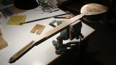 Ο Νάσος απ' ό,τι έχω δει το κάνει με μαλακό "υπόστρωμα" στην διάρκεια της κόλλησης (με το εργαλείο το -πως-το-λένε που πατάς τα καμάρια με τα ξυλάκια) και έτσι προσαρμόζεται το καπάκι στην διαμόρφωση των καμαριών. Το πρόβλημα είναι ακριβώς πως θα γίνει η διαμόρφωση των καμαριών με στρεβλό πέλμα (όχι απαραιτήτως κάθετο στον άξονά τους, και με διπλή καμπυλότητα - άρα αποκλείεται η χρήση των γνωστών εργαλείων όπως ρούτερ, κάθετο δράπανο κτλ. γιατί απλώς αυτά κόβουν "ίσια"). Με το dish τα κάνεις και τα δύο (διαμόρφωση καμαριών όπου θες μέσα στην επιφάνεια και κόλληση). Και αυτή η κατασκευή είναι πολύ εύκολη, απλώς πιάνει χώρο. Ακόμα έχουμε χώρο (αν δεν μας τα πάρει η τράπεζα).