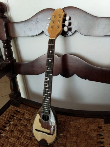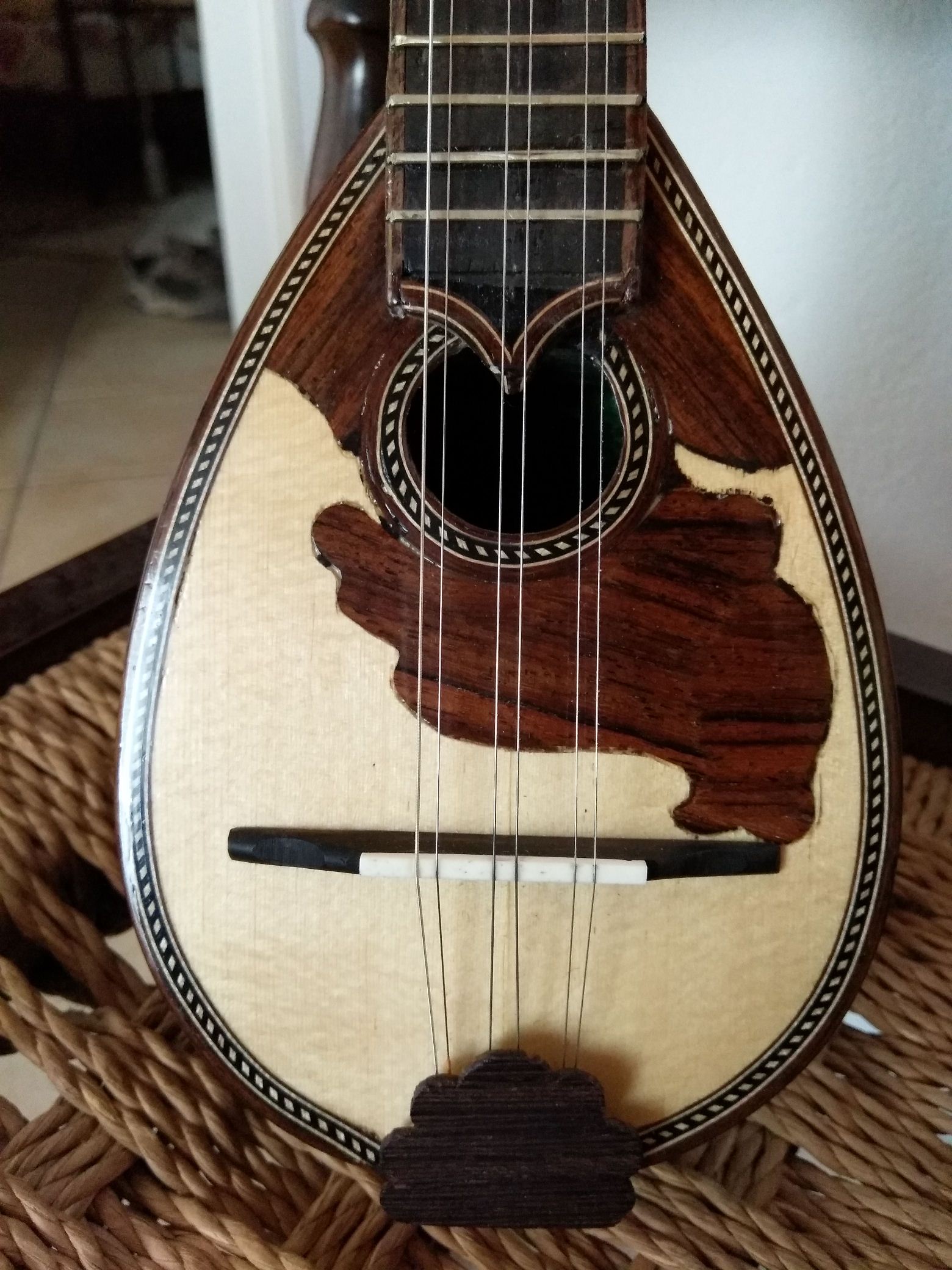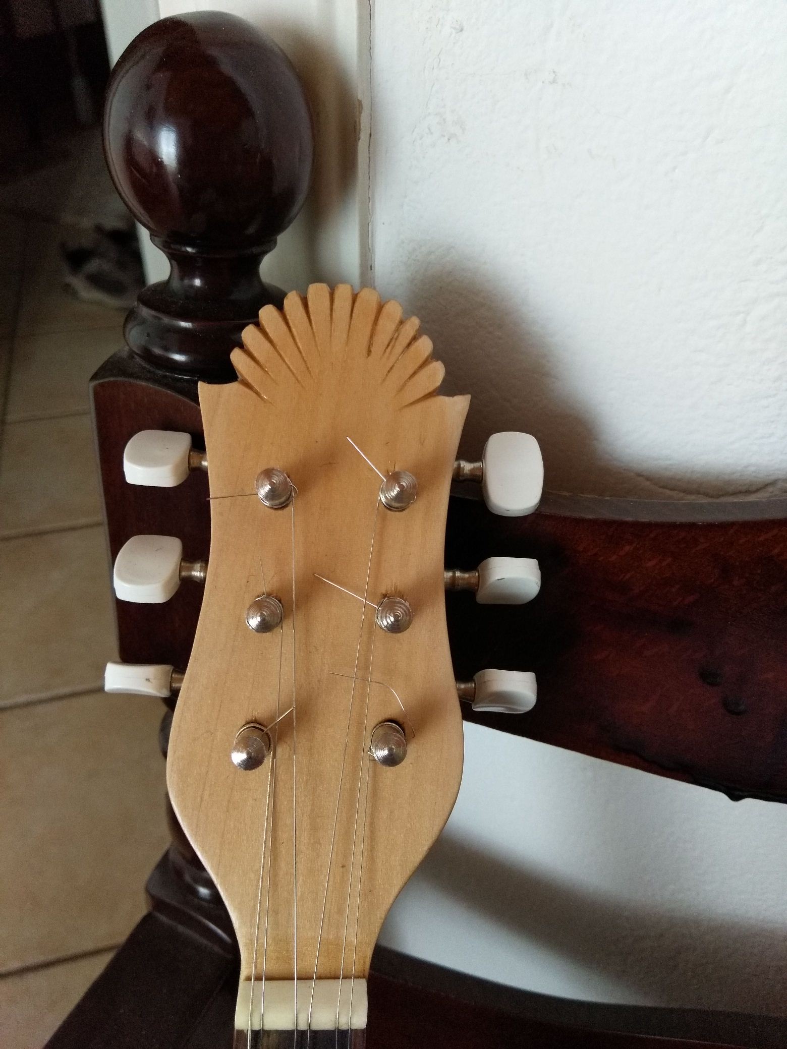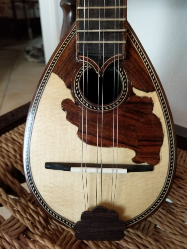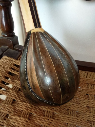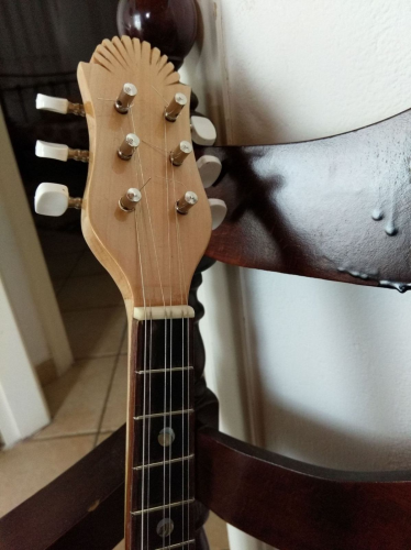 Έχει κλίμακα 35cm, καπάκι Έλατου Αυστρίας  ΑΑΑ, εβένινο καβαλάρη και ταστιέρα και φλαμούρι σε μάνικο και καράολο. Το μανίκι έχει ενισχυθεί με κόντρες ινδικού παλίσσανδρου. Η πεναριά είναι από καπλαμά παλίσσανδρου επίσης.