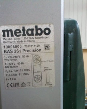 Απ: Πωλείται πριονοκορδελα Metabo BAS 261 Precision (Νεάπολη -Θεσσαλονίκη)