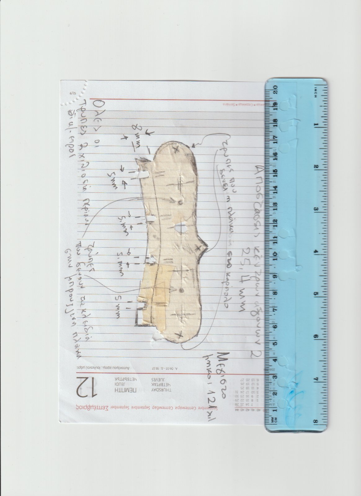 Σε πρώτη φάση ανεβάζω μια φωτογραφία με την καταγραφή του οργάνου σε 1:1 κλίμακα.