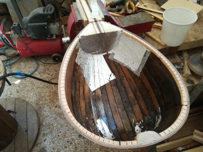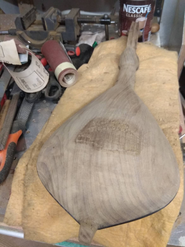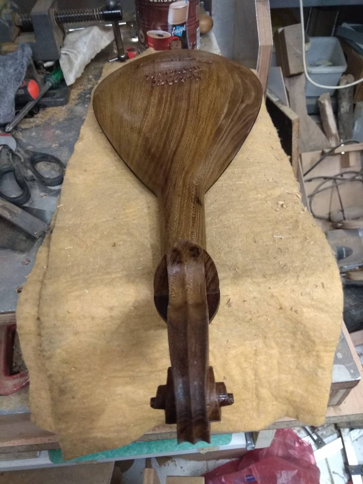 Συνεχεια και ολοκληρωση με τα φιλετα , τρψιμο και βερνικωμα το καπακι, κολλημα γλωσσας, διαμορφωση μανικιου τριψιμο και βερνικωμα ενα χερι το σκαφος.