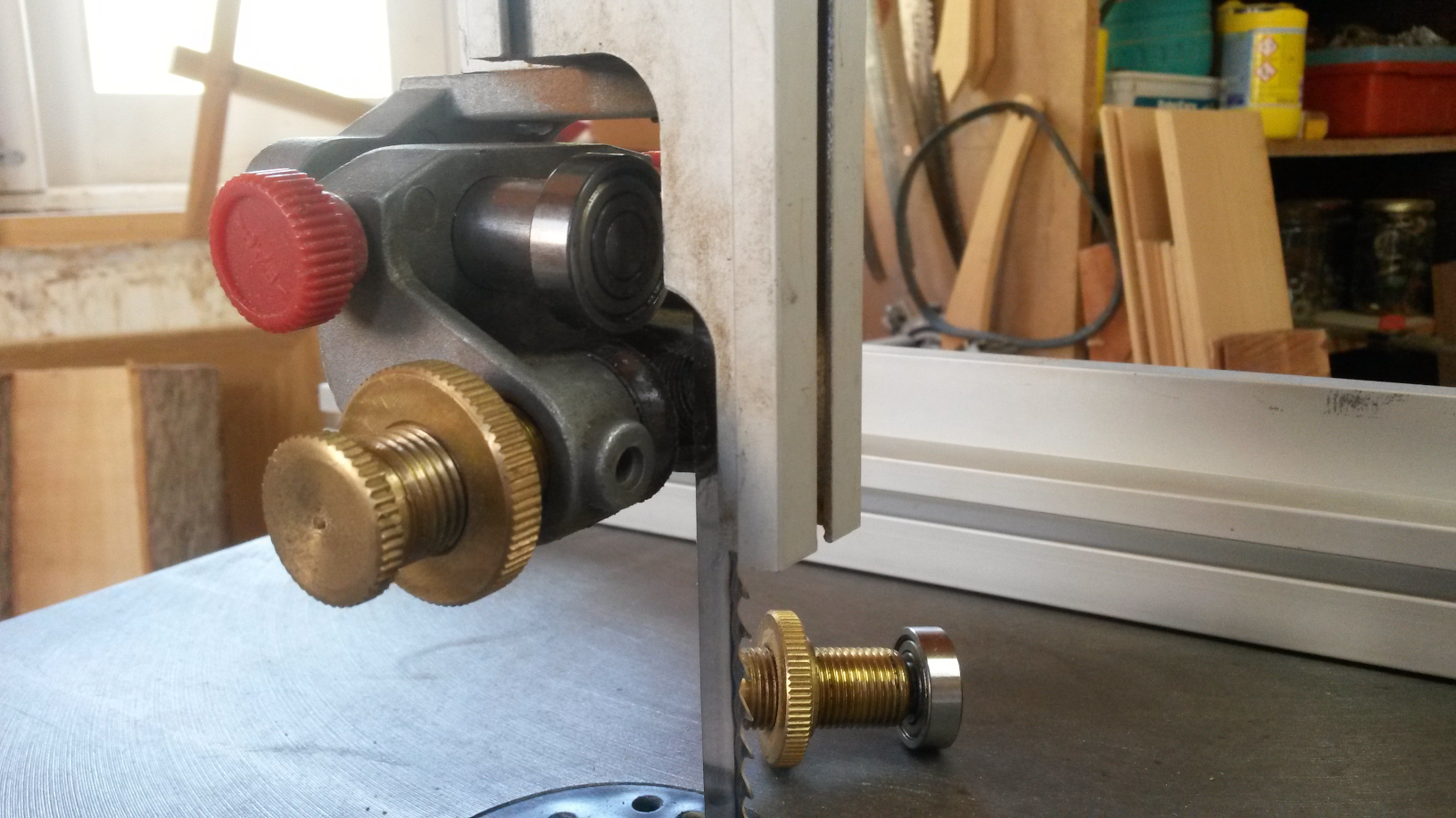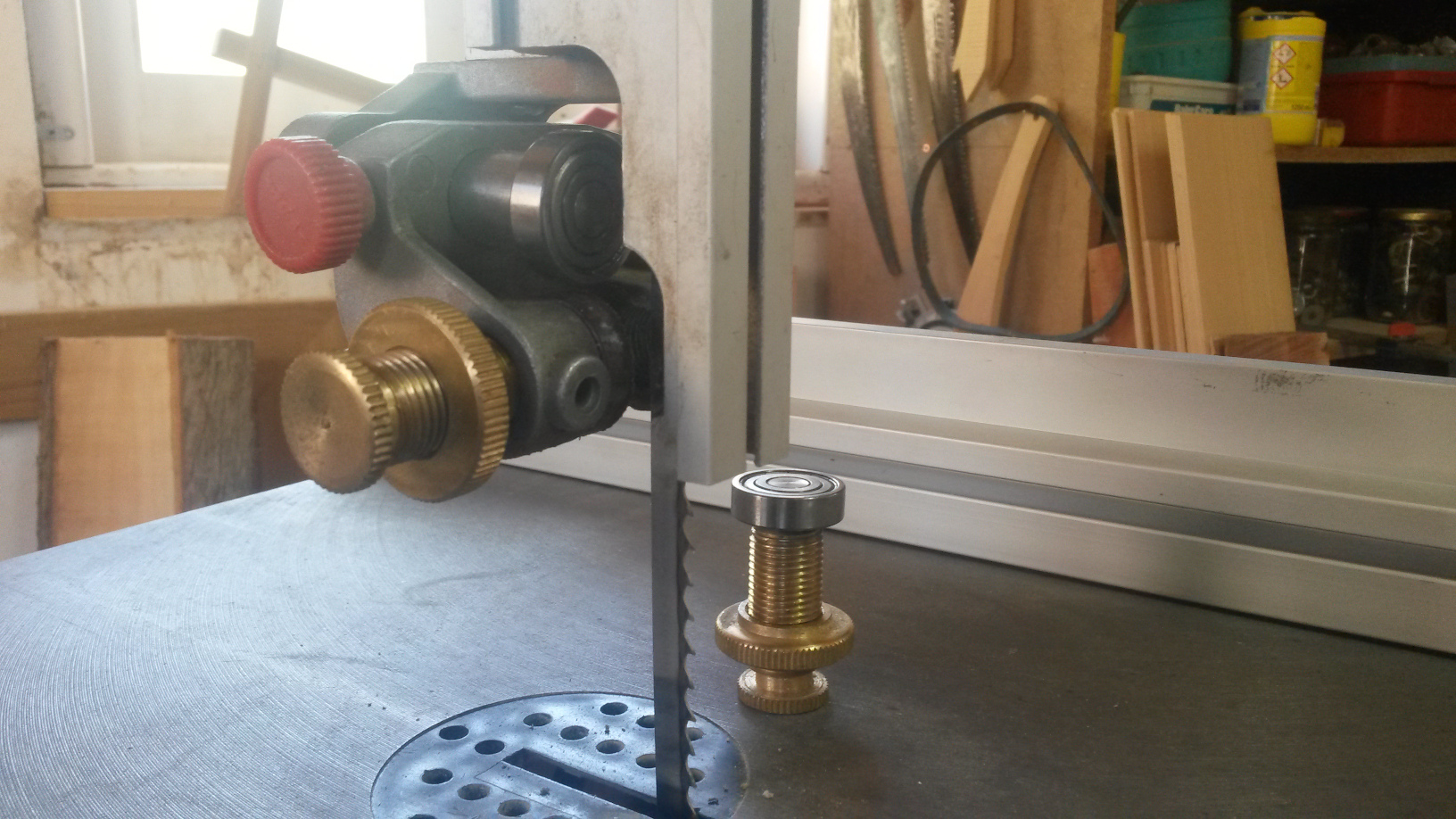 Κυριοι σας στελνω τις φωτο απο τις οποιες καταλαβαινετε πλεον πως γινεται η τοποθετηση των ρουλεμαν. Ισως το πισω ρουλεμαν ειναι ενα χιλιοστο μικροτερο απο την ροδελα που ειχε ο οδηγος της METABO. Αυτο δεν παιζει κανενα ρολο στα ρουλεμαν δεξια-αριστερα ο αξονας ειναι μεγαλυτερος ωστε να εφαρμοσουν τα ρουλεμαν το υπολοιπο τορνιρεται με βαση το αξονακι του αρχικου οδηγου-ροδελας της METABO . Η ιδια δουλεια γινεται και στον κατω οδηγο. Προσοχη , οι αξονες γινονται αντιγραφη μηκος-παχος του πρωτοτυπου οδηγου. Οποιος εχει αποριες να ρωτησει, να με παρει τηλεφωνο. Για οσους το βρισκουν δυσκολο τουλαχιστουν το πισω ρουλεμαν που κοντραρει η κορδελα να το βαλετε, αξιζει τον κοπο.