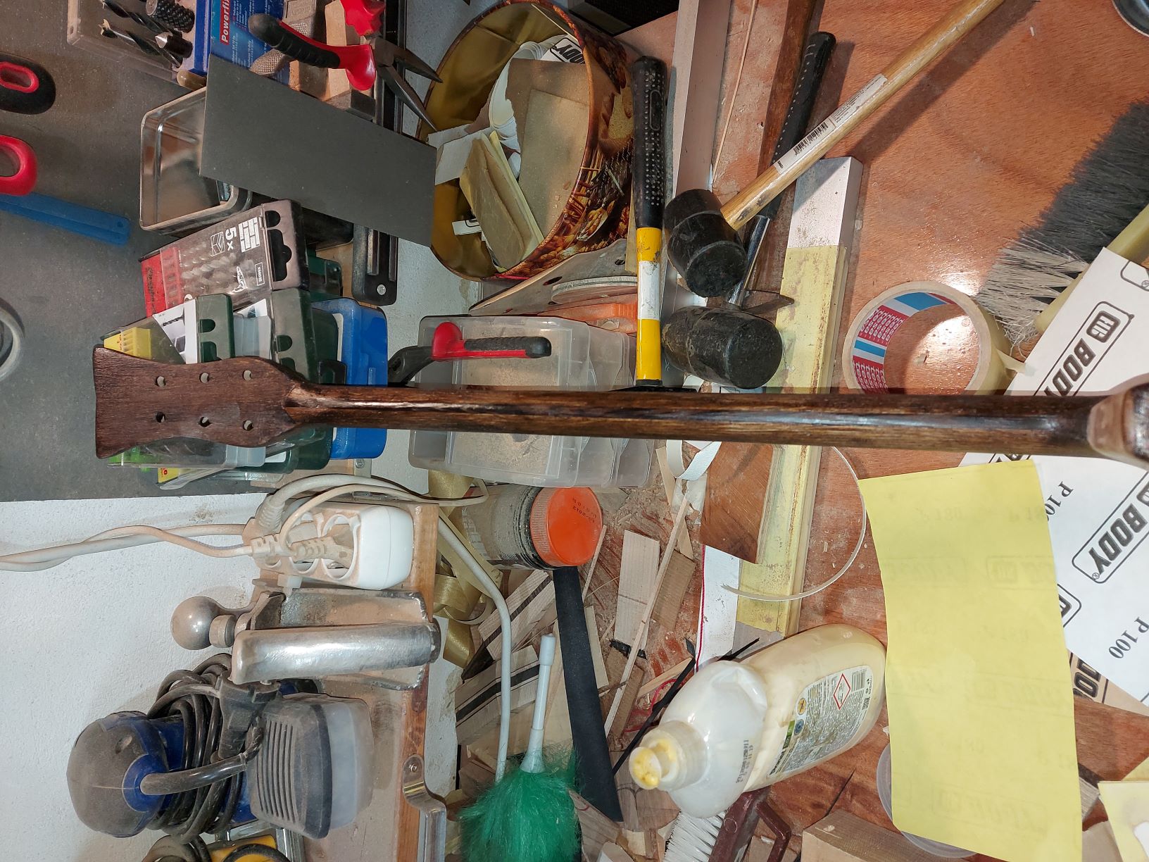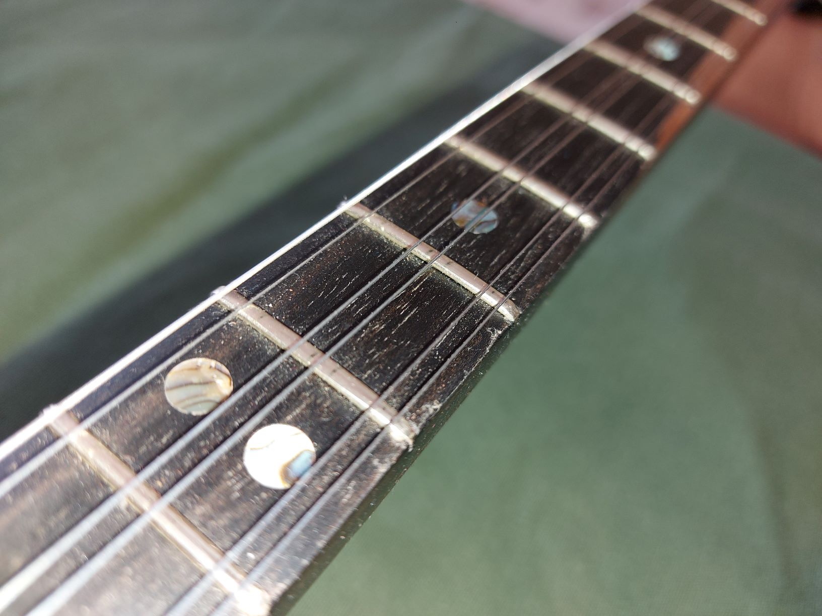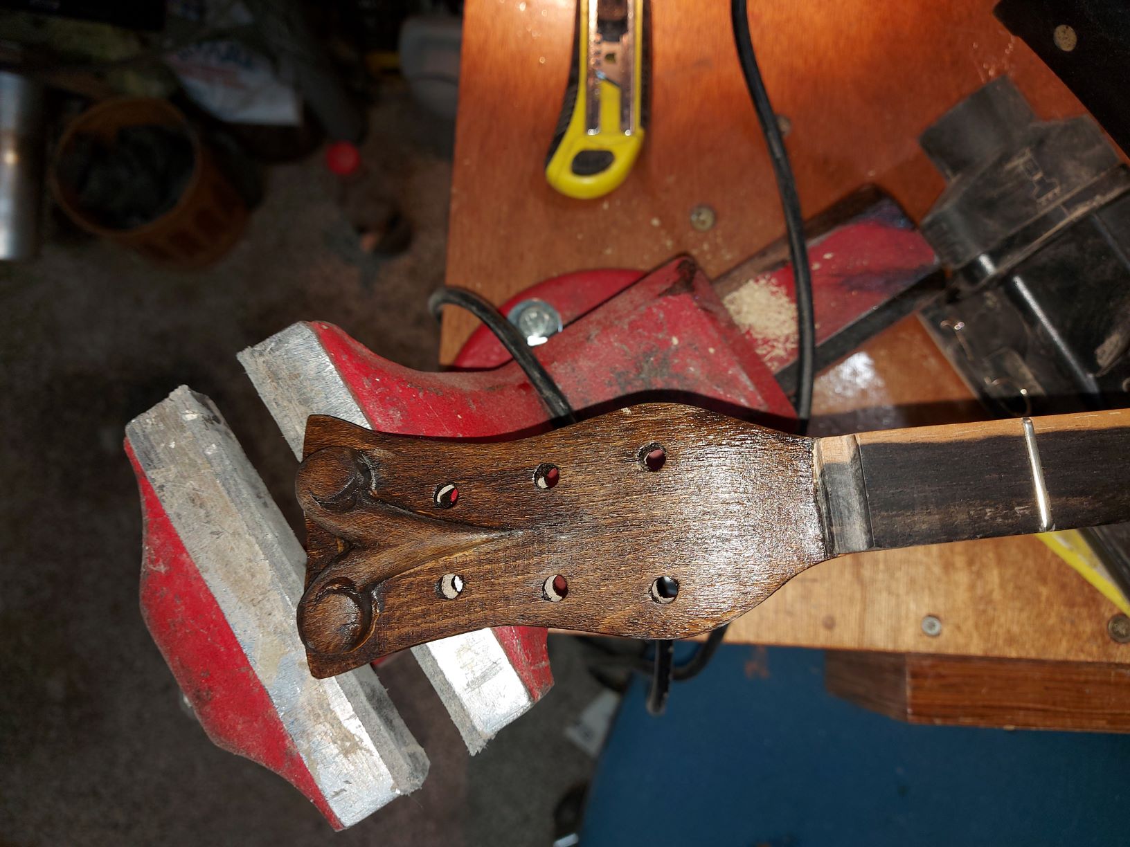 Τριφτήκανε τα τάστα και μορφοποιήθηκε το μάνικο με παστράγκουλο, ράσπα, λίμα και ξύστρα.