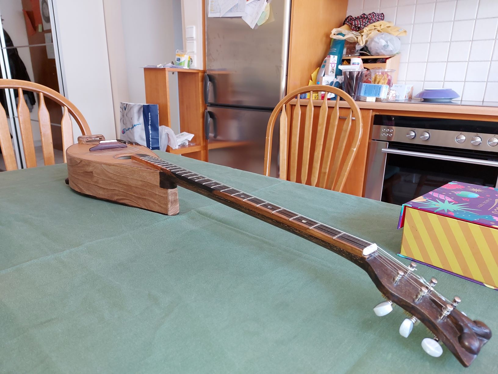Ο μεγάλος μου ο γιος το καβάτζωσε ήδη. Βέβαια μου κάνει κάτι περίεργα. Το παίζει σαν slide κιθάρα ακουμπισμένο στα πόδια με πεντατονικές στυλ μπλουζ. Δεν ήταν ο σκοπός μου αυτός αλλά αφού του αρέσει δεν βαριέσαι. Πρόλαβε να γρατσουνίσει ήδη και το καπάκι.