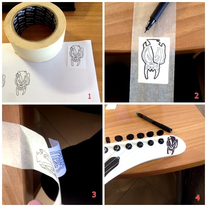-Μεταφορά της χαρτοταινίας στο Headstock και ζωγραφίζουμε τις τελευταίες πινελιές (φώτο 4).