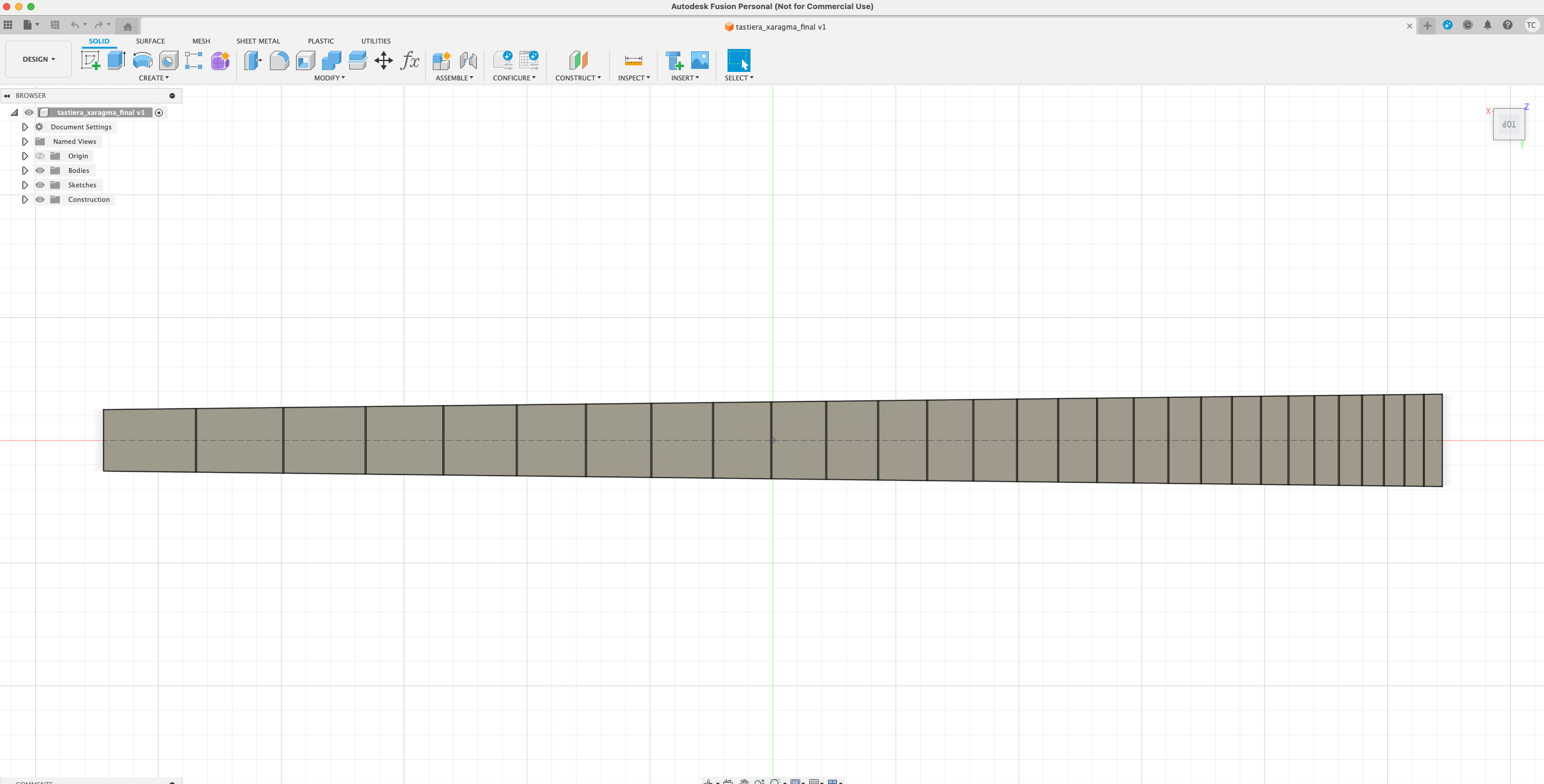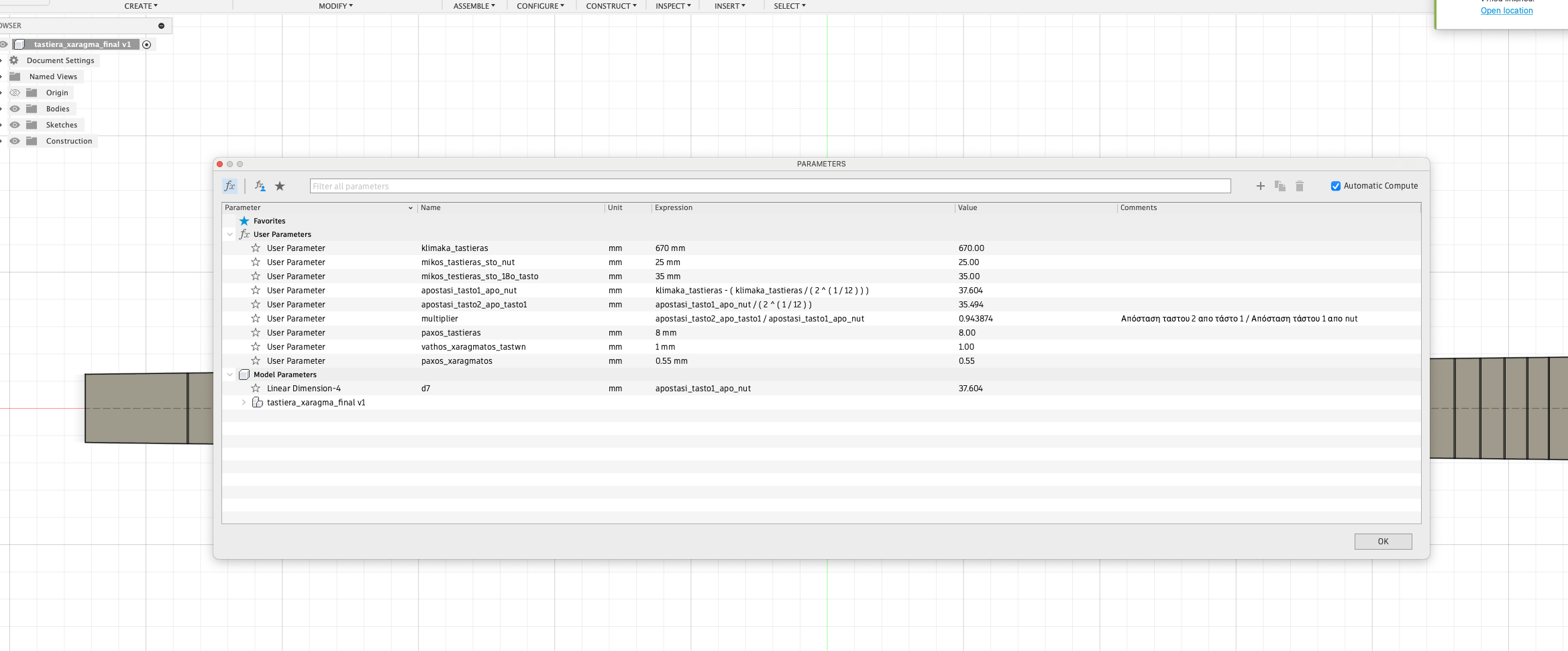 Πρόσφατα έφτιαξα ένα μοντέλο στο Fusion 360 το οποίο είναι παραμετροποιήσιμο να χαράζει τη ταστιέρα όπως ακριβώς τη θέλει ο καθένας αλλάζοντας απλά κάποιες παραμέτρους.
