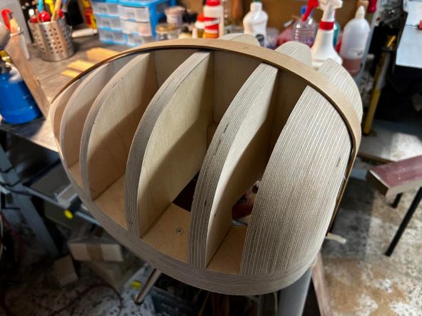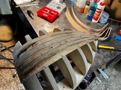 Για το σκάφος, θα αποπειραθώ να συνδυάσω για πρώτη φορά καρυδιά & αχλαδιά. Καλό δείχνει, ύστερα από ελαφρύ βρέξιμο "προσομοίωσης"..