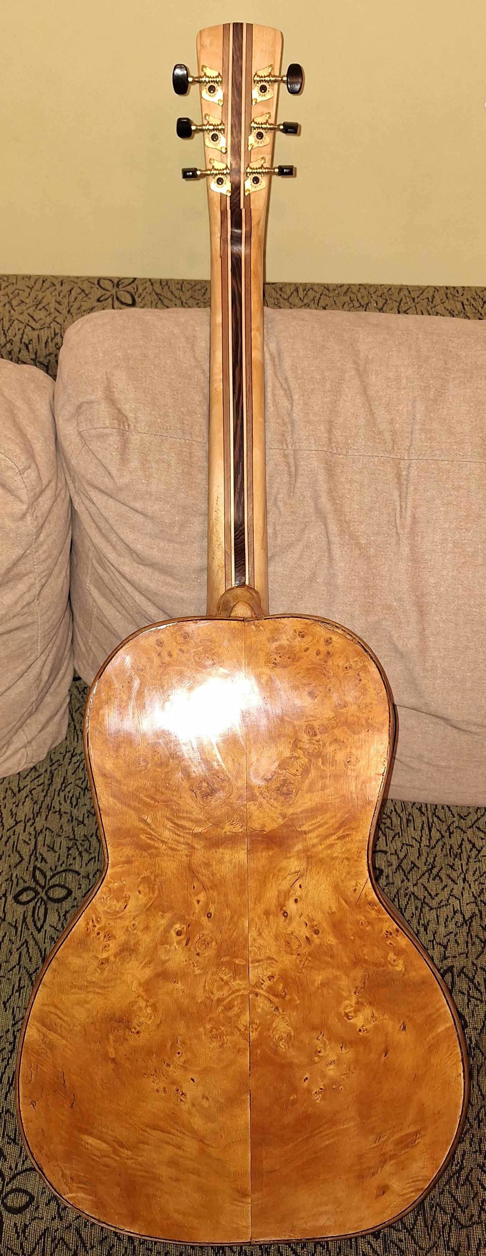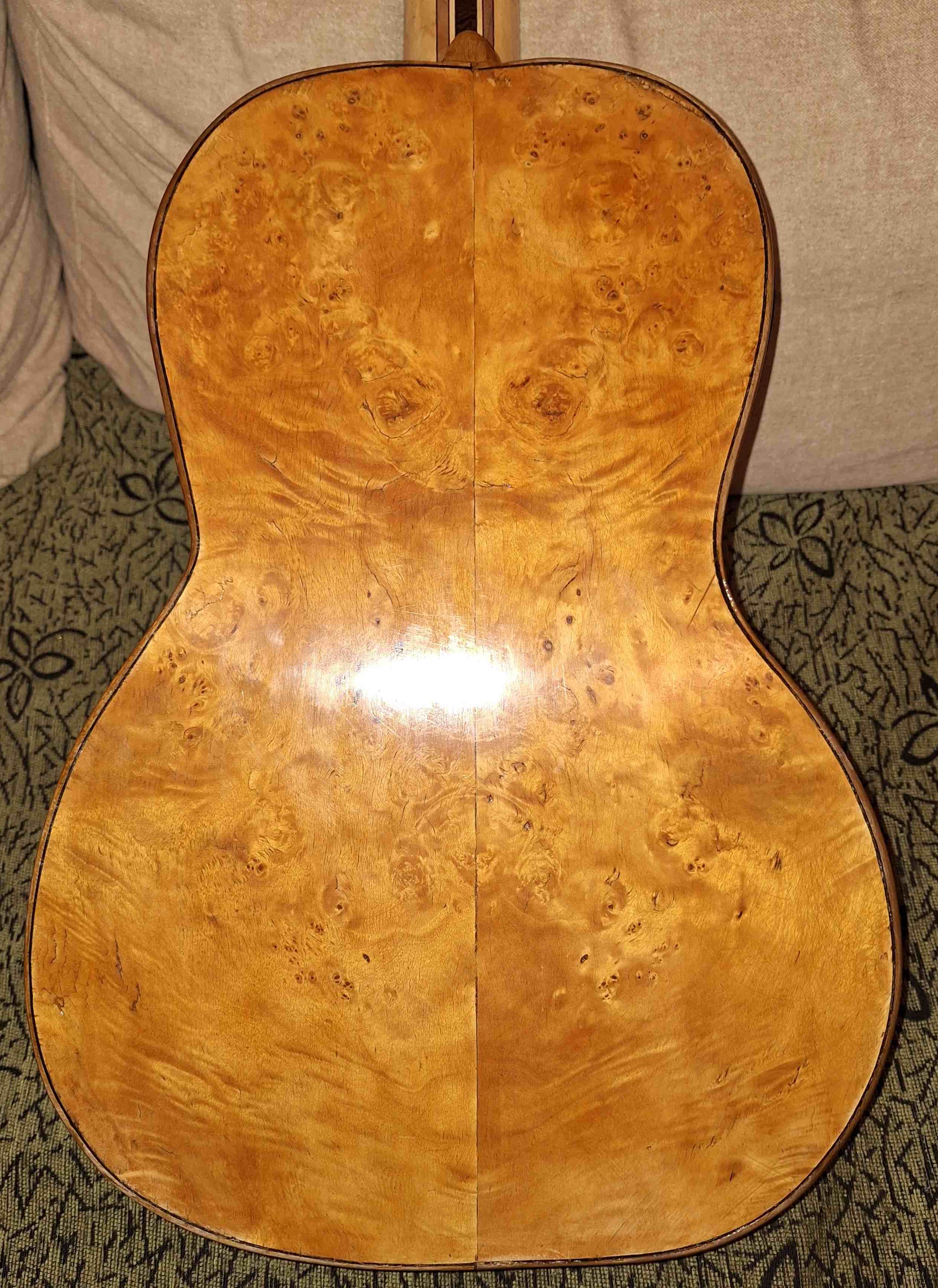 Πλάτη από κόντρα πλακέ με καπλαμά ρίζα (book matched), πλαϊνά κελεμπέκι, καπάκι έλατο,