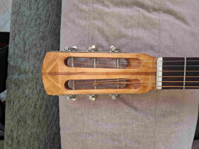 Τέλος, μιας και όποιος κιθαρίστας την έπιασε στα χέρια του μου παραπονέθηκε πως το μπράτσο είναι φαρδύ για ακουστική οπότε του μίκρυνα το πλάτος, έτσι όπως ήτανε με την ταστιέρα και τα τάστα. Στηνένωση στο καράολο από 50 χιλισοτά το κατέβασα στα 45 χιλιοστά. κρατώντας στο ίδιο πλάτος το τελείωμα της.