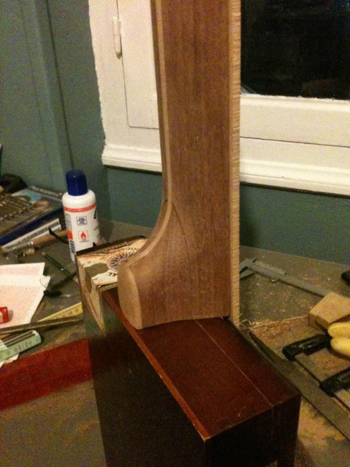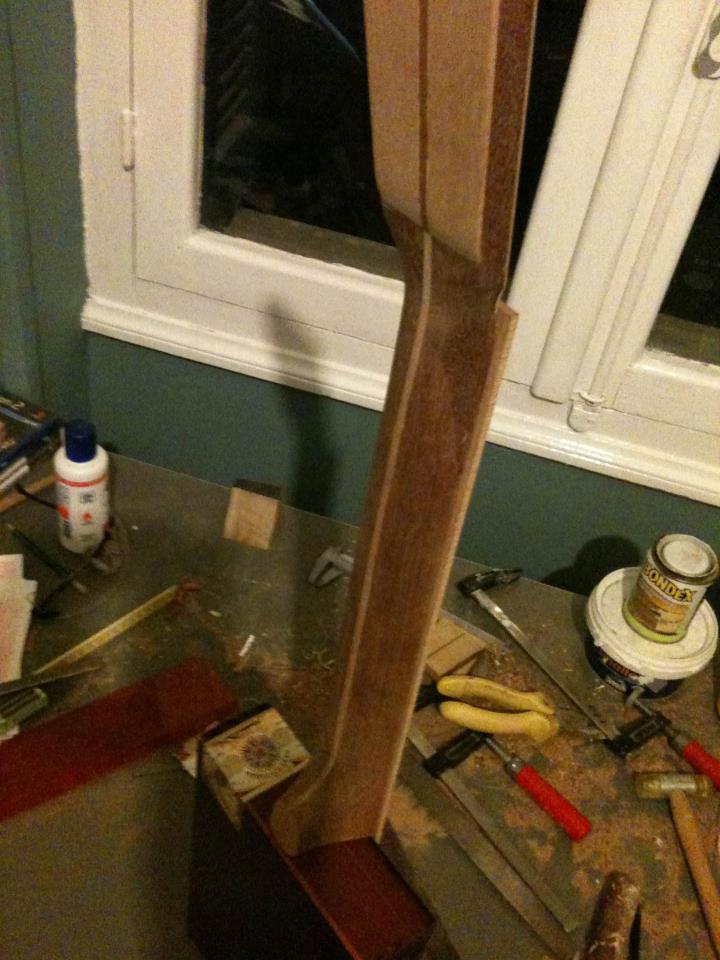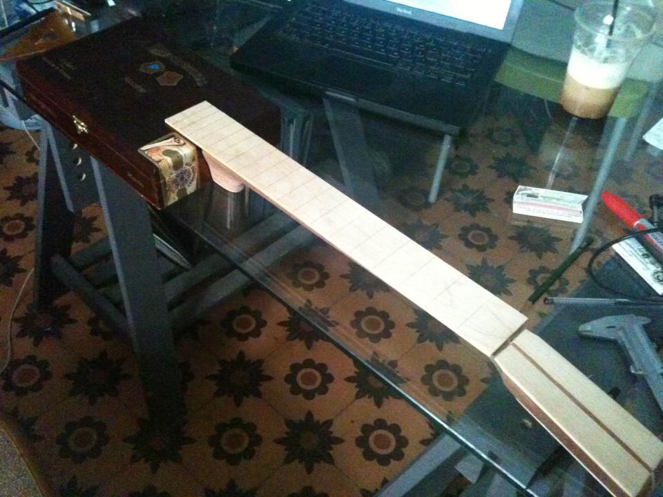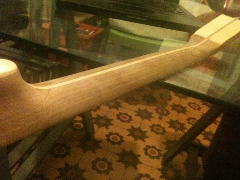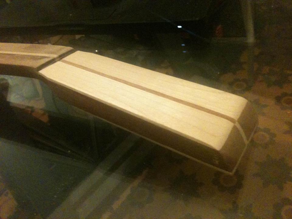 Ανακυκλωση ωρα μηδεν χρησημοποιωντας ενα μπρατσο απο μαονι απο παλιοτερο προτζεκτακι, εχω ξεκινησει την κατασκεβη ενος 5χορδου με κλιμακα 24,4'' και 19 ταστα...εκανα την αποπειρα και το εκοψα στη μεση και το ξανακολησα με κοντρα σφενδαμου*. Σφενδαμος θα ειναι και η ταστιερα...