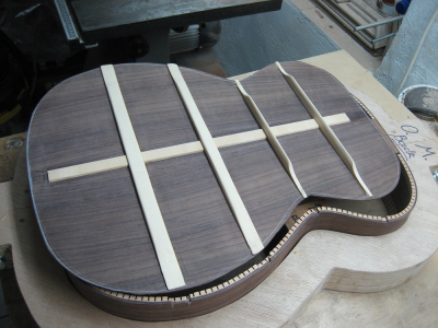 Με τη βοήθεια και τη συμπαράσταση του παιδικού μου φίλου Γρηγόρη (που περιμένει και αυτός την κιθάρα του) είμαι ήδη στη φάση να κολλήσω την πλάτη στην πρώτη κιθάρα.
