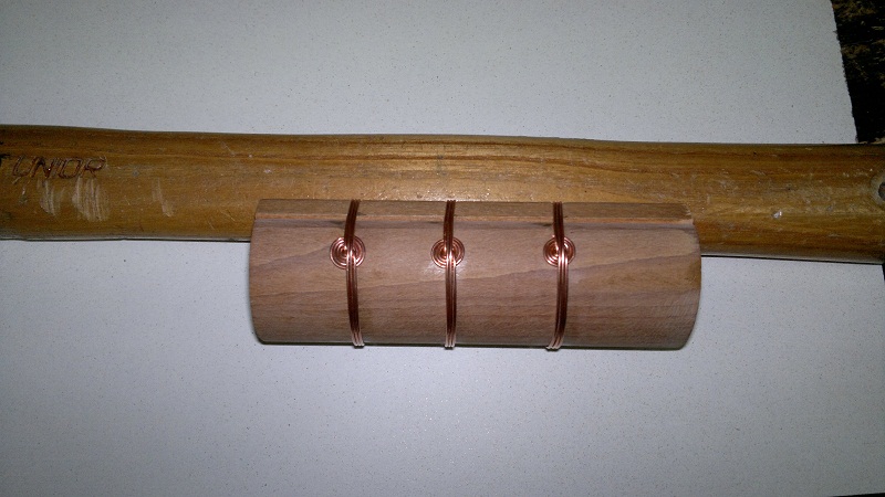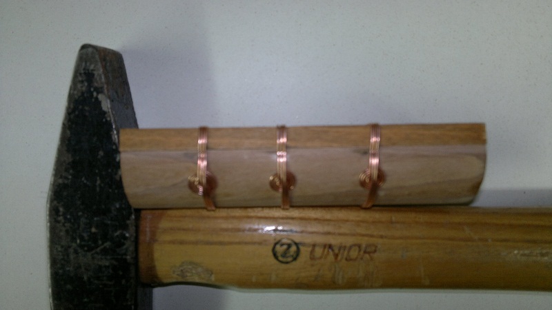 Το χαλκόσυρμα είναι πάχους 0,56 χιλ και είναι χαλκόσυρμα που χρησιμοποιείται στην περιτύλιξη πηνίων μετασχηματιστών ή ηλεκτρικών κινητήρων γιατί η μόνωση που έχει εμποδίζει την οξείδωσή του. Το μήκος του κάθε κομματιού είναι περίπου 60 εκ., αρκετό για να μπορεί να πιαστεί και να σφίξει επαρκώς τον μπερντέ. Εγώ εδώ χρησιμοποιώ απλό χαλκόσυρμα πάχους 0,8 χιλ. γιατί το 0,56 χιλ. φαινόταν θολό στις φωτογραφίες λόγω του μικρού πάχους του.