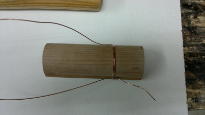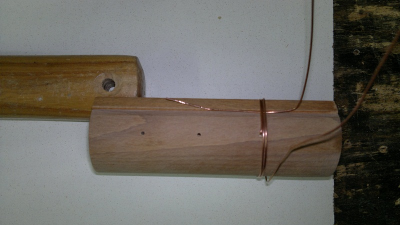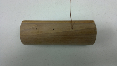 Κάνουμε ένα μικρό τσάκισμα στην άκρη του χαλκοσύρματος ώστε να εμποδίζεται η εύκολη έξοδός του απ’ την τρύπα και το τοποθετούμε μέσα στην τρύπα σφηνώνοντάς το με μια οδοντογλυφίδα ή εάν έχουμε με ξυλόκαρφο που το βρίσκουμε σε παλιά παπουτσάδικα.