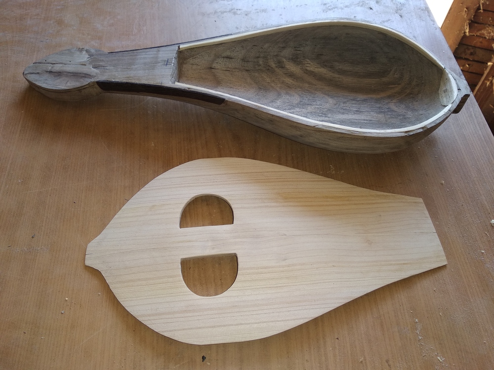 Για το σκαφος ειναι ενα κοματι απο ενα κουτσουρο καρυδιας που το εκοψα στη μεση..