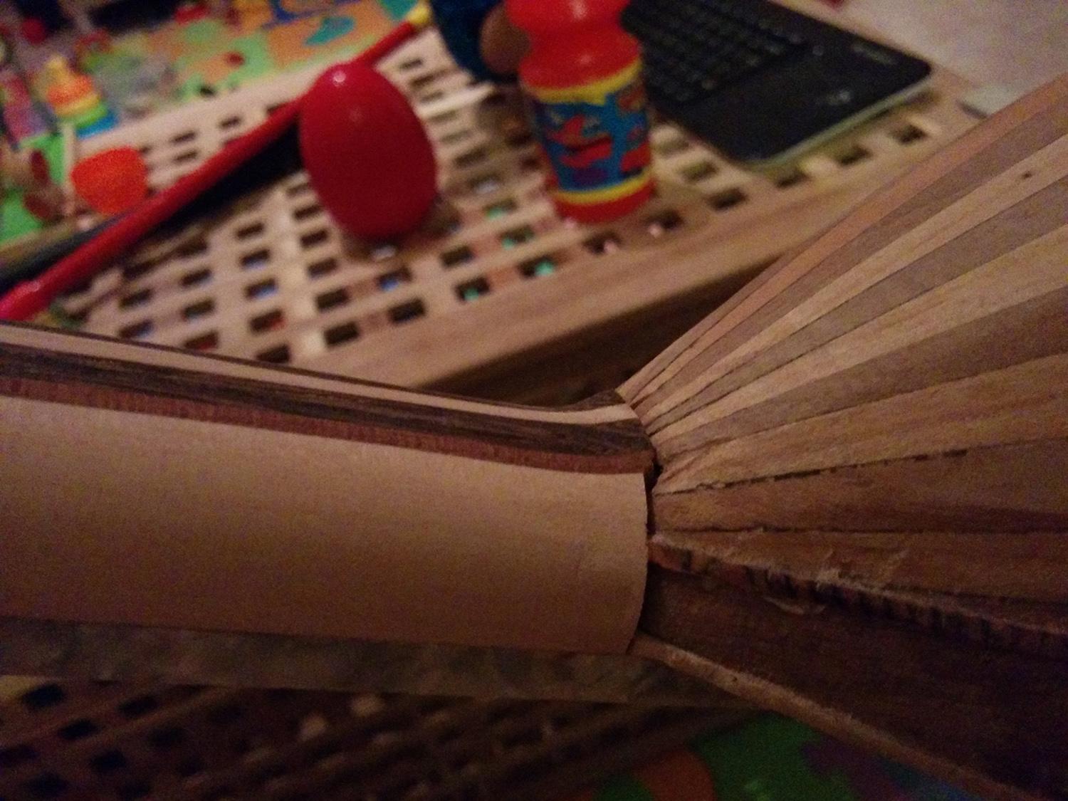 3) όταν κόλλησα το καράολο στο μανικο ταδύο ξύλα δεν εφάρμοσαν σωστά οπότε τώρα τρώγοντας τον μάνικο αποακλύφθηκε το καρακάτω γεμισμα κόλλας.