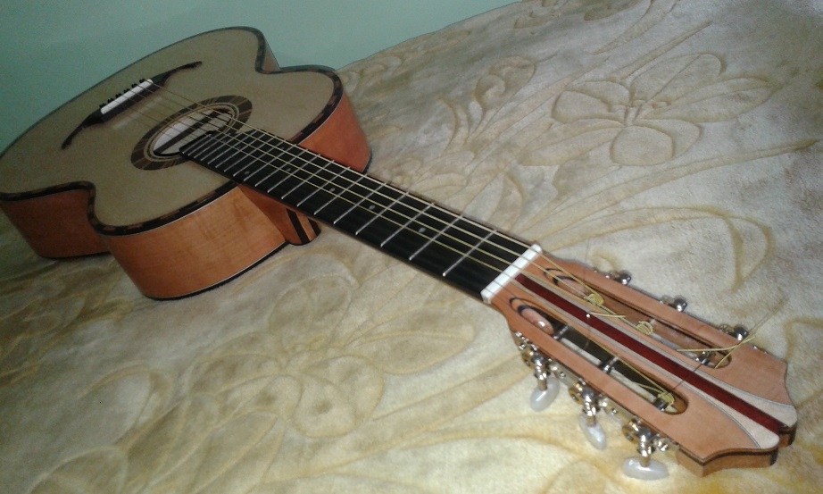 Μετα απο αρκετό καιρό απουσίας απο το φόρουμ παρουσιάζω την πιο πρόσφατη δουλειά μου. Ρεμπετοκιθάρα με σκάφος απο αγριαχλαδιά, (γκορτσιά το λέμε αυτο το ξύλο στο χωριό μου).