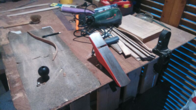 Προσπαθώντας να διαμορφώσω τις πρώτες μου ντουγιες, είδα πως χρειάζομαι οπωσδήποτε μια σταθερή πλάνη. Ξεβίδωσα λοιπόν τη χειρολαβή από την πλάνη χειρος που έχω, πήγα στην αποθήκη και έφτιαξα αυτό το πολύ απλό: