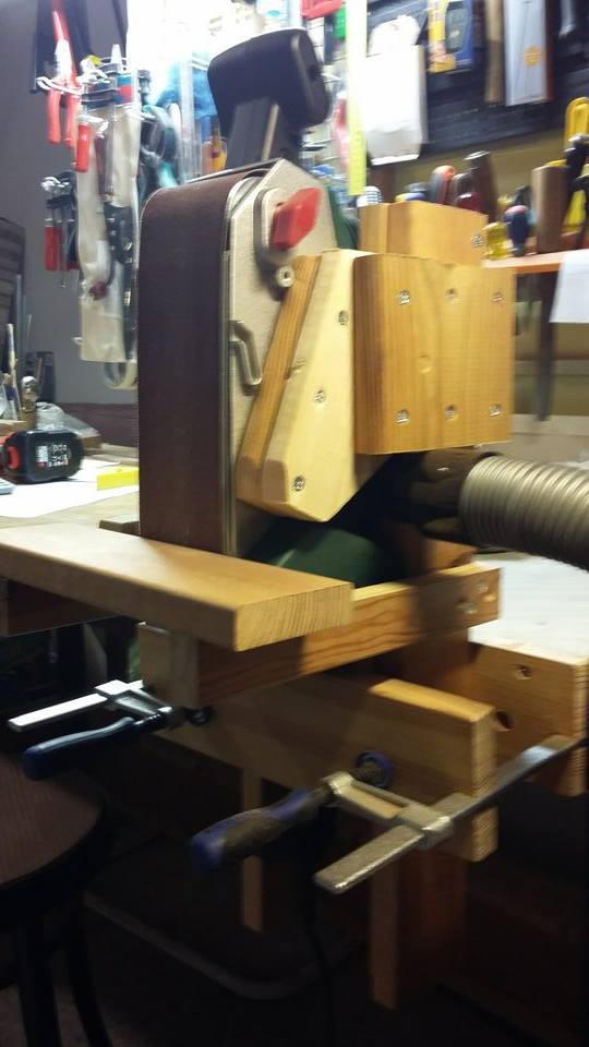 Αυτή η πατέντα, με το λειαντήρα σε ορθια θέση , θα μου ταιριάζει καλά για τις δουλίτσες που χρειάζομαι να κάνω. Βέβαια η σταθερή κατακόρυφη στήριξη - στερέωση από μηχανάκι σε μηχανάκι διαφέρει αλλά η γενική ιδέα και η εκτέλεση μου αρέσει.