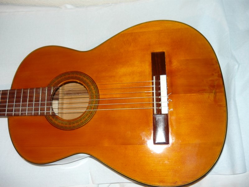 Φρέσκο λουστράρισμα από την αρχή Μετά την έδωσα στον γαμπρό μου που παίζει ολίγη κιθάρα Όταν μετά από κάνα μήνα άνοιξα την μουσαμαδένια θήκη την βρήκα σπασμένη  με μία σχεδόν τρύπα στο καπάκι ακριβώς μπροστά από τον πίσω τάκο ( την έσπασε η καθαρίστρια ! ) Φασαρίατζίδικη επισκευή